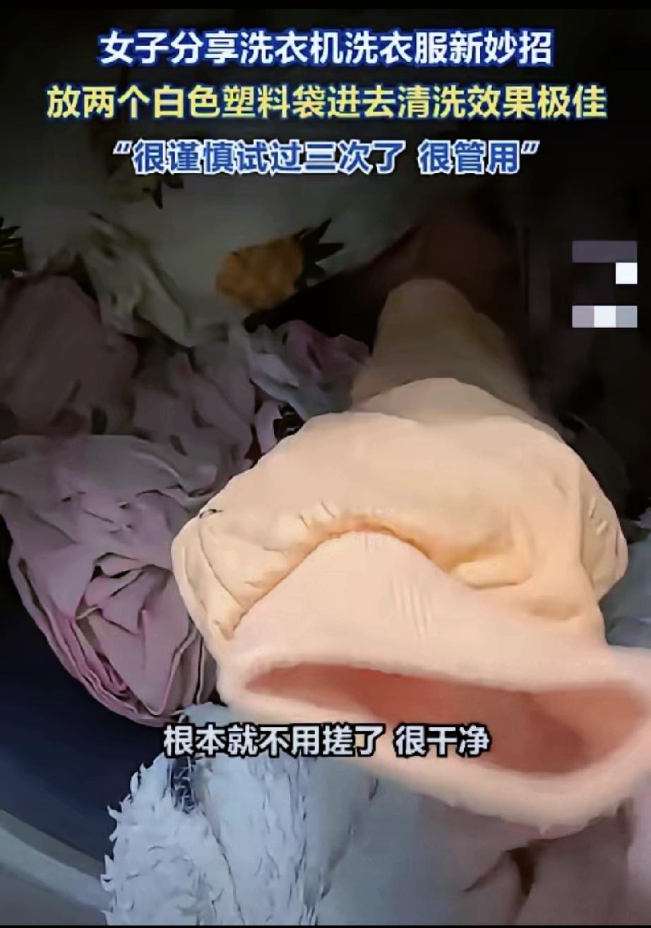 山东一女子小李意外发现,洗衣机里混入的白色塑料袋竟让衣物洗得格外干净,连边角油渍都一扫而空。 平时她洗冬季外套、裤子,油渍需手动搓洗才能去除,这次起晚直接机洗,晾晒时才察觉异常,罪魁祸首正是兜里遗忘的超市塑料袋。 为验证猜想,她做了对照实验:两次不放塑料袋,衣物油渍残留;两次放塑料袋,衣物洁净如新。 后续多次尝试均证实此方法有效,她将此事分享到网上,有网友推测是塑料袋转动产生静电吸附污渍,同时摩擦衣物边角增强清洁力。