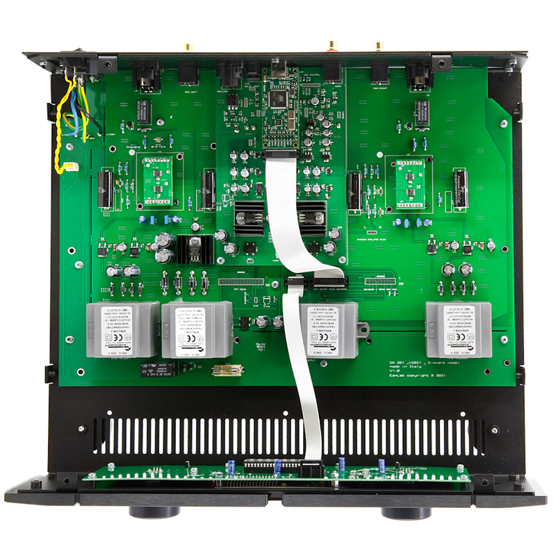 电路架构 采用真正的双单声道结构和全平衡放大线路。从电源开始,数字部分与模拟部分、左右声道均采用独立变压器供电(共四只变压器),有效减少干扰,提升声道分离度和纯净度 。
