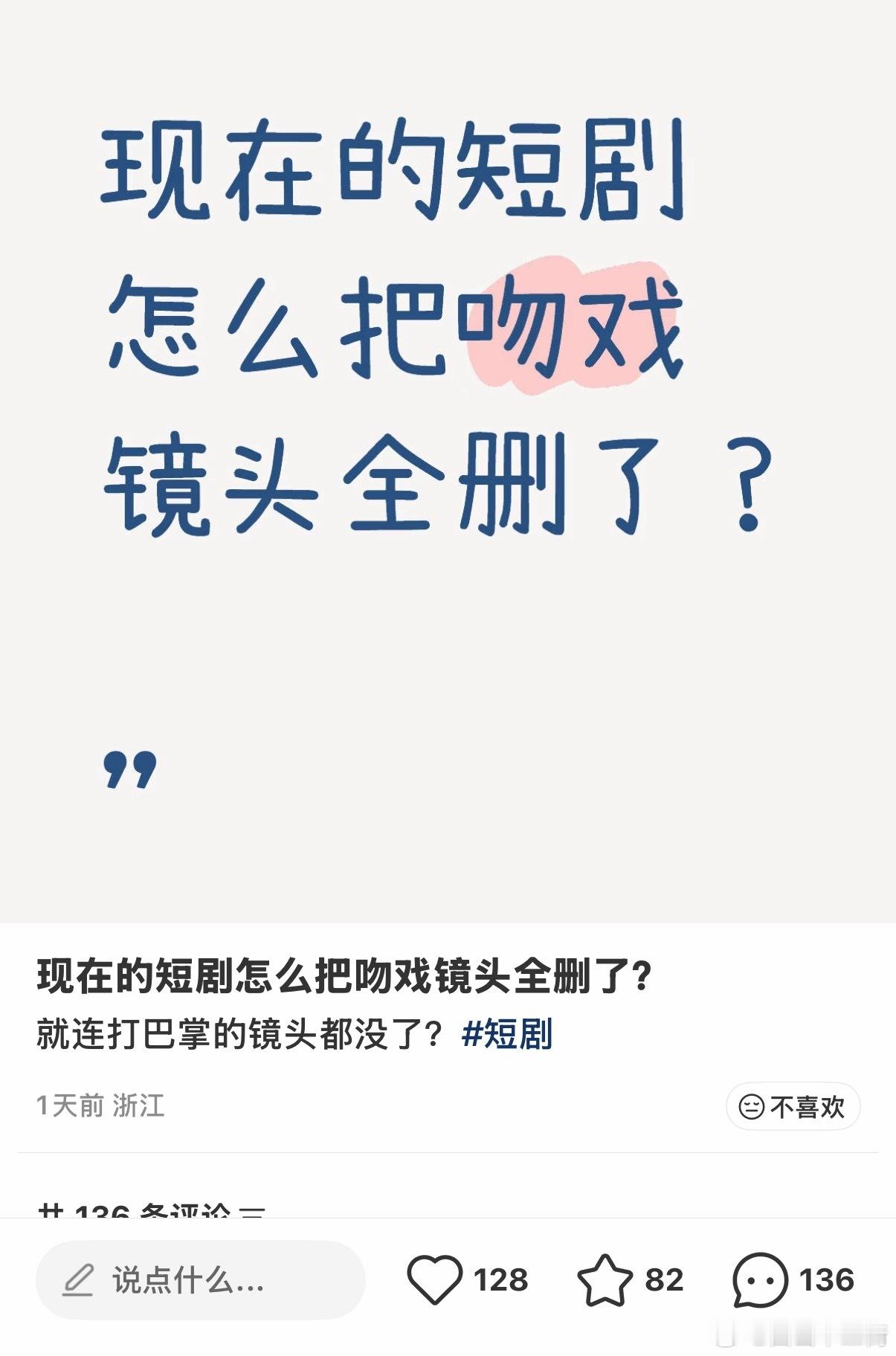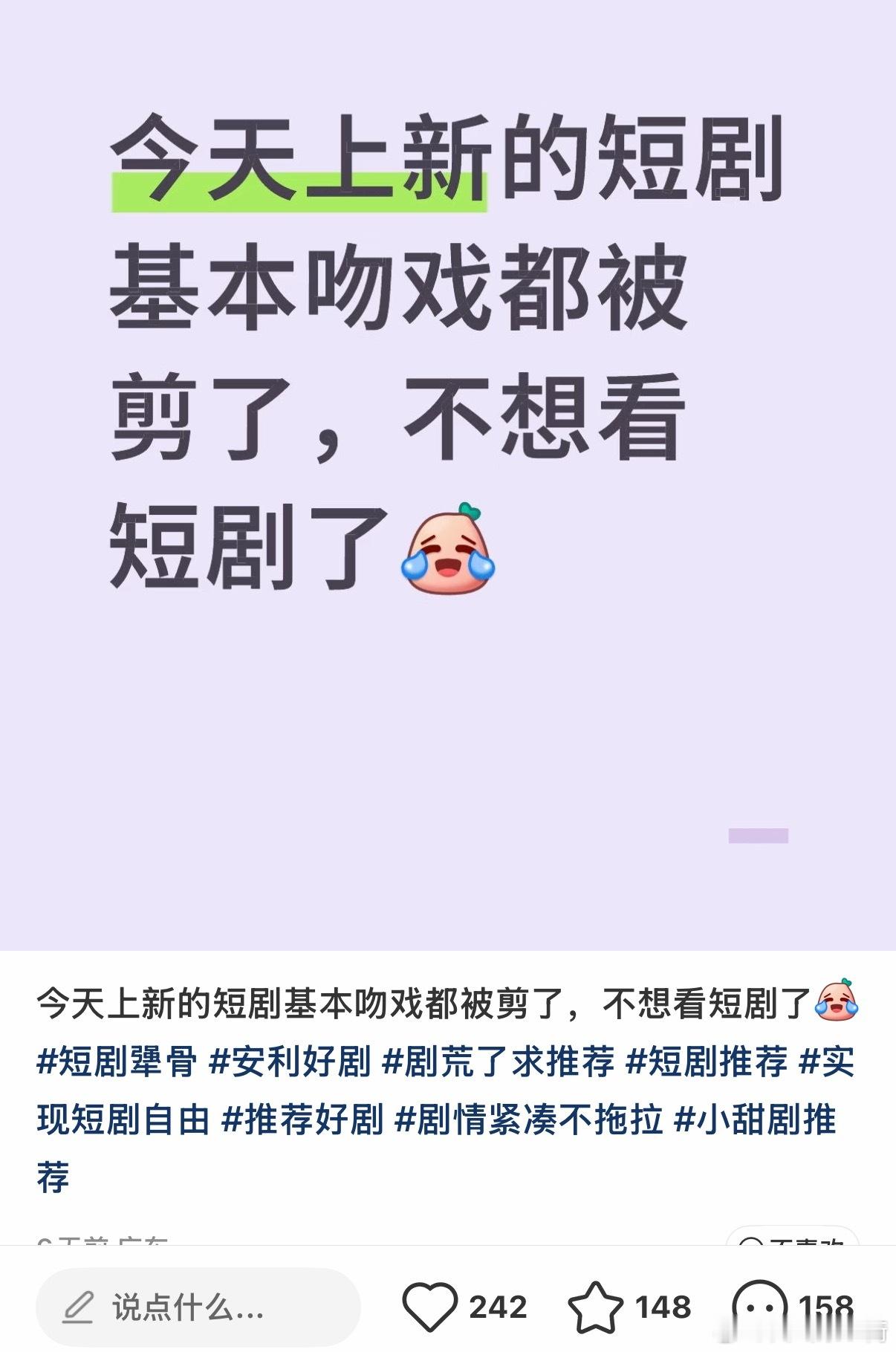 审查的风也吹到了短剧吗,有网友称近期上新的短剧删了很多吻戏