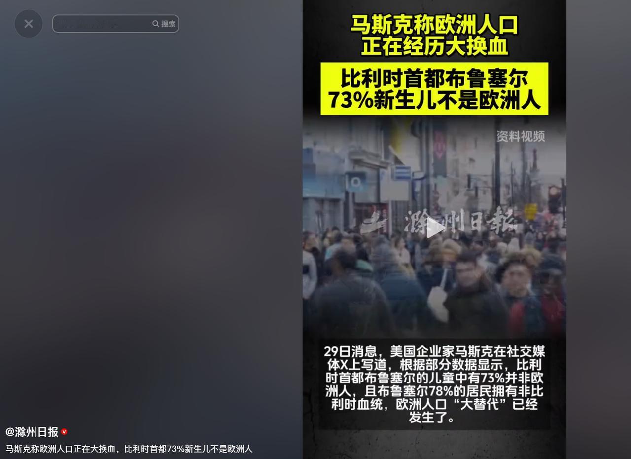 真正的敌人,不是俄罗斯,不是核弹打击。马斯克发出警报:欧洲民族大替换正在发生!在比利时布鲁塞尔,73%的儿童都不是欧洲人。整个民族大替代,正在发生! 根据比利时官方统计局披露的信息,在布鲁塞尔未成年人这个群体里,有超过七成的人都有移民背景。 也就是说,你去布鲁塞尔的学校门口蹲点,或者去公园的游乐场看看,十个孩子里可能只有一个是纯正比利时血统家庭出来的,剩下的九个,要么父母是移民,要么祖辈是移民。 这意味着这座城市的未来主力军,已经换了一拨人。 这种变化当然不是一夜之间发生的,它更像是一场持续了二十多年的“温水煮青蛙”。 上世纪90年代,布鲁塞尔街头的外国面孔虽然有,但远没有现在这么普遍。那时候非比利时籍的居民占比还不到两成。 可到了2024年底,光是还没入籍的外国人就占了总人口的快四成,如果算上那些已经拿到身份的二代、三代移民,这个比例早就超过了一半。 现在的布鲁塞尔,走在大街上,你听到的除了法语或荷兰语,还可能是阿拉伯语、土耳其语或者是各种口音的英语。 为什么会变成这样?这背后其实有两只推手在共同作用。 第一只手是欧洲本地人自己“不争气”的生育率。现在的欧洲年轻人,生活压力大,观念也变了,很多人觉得养孩子太累,还要牺牲自己的生活质量,所以干脆晚生或者不生。 欧盟统计局的数据在那摆着,整个欧盟平均每个妇女只生1.46个孩子,如果没人来填补,人口总数早就崩了。 第二只手就是不得不开的“外援”通道。 本地人不生孩子,可工厂得有人做工,老人得有人照顾,餐馆得有人端盘子。这些脏活累活本地人不愿意干,人手又不够,那就只能指望移民。 于是大量的非洲、中东以及其他地区的移民就这么进来了。他们年轻,肯干活,最重要的是,他们愿意生孩子。此消彼长之下,人口结构的天平自然就倾斜了。 这就带来了一个很现实的问题:当人口结构彻底改变后,社会原来的样子还能维持吗?这不光是街坊邻居换了人的事,更深层的影响在于未来的话语权。 在一个民主社会,人多就是力量,选票在谁手里,政策就会向谁倾斜。 现在的这些移民后代,等他们长大了,成了社会的中坚力量,他们自然会要求社会资源向他们的群体倾斜,要求政策符合他们的价值观。 到那时,欧洲传统的文化习俗、法律法规,甚至是社会福利的分配方式,可能都得重新洗牌。 有些人管这个叫“鸠占鹊巢”,觉得这是主体民族的危机;也有人觉得这是全球化时代的必然,是城市发展的代价。 但不管怎么定义,事实就是布鲁塞尔已经成了一个样板,它展示了如果不加干预,欧洲很多大城市的未来会是什么样。 现在的伦敦、巴黎、阿姆斯特丹,其实都在经历类似的过程,只是布鲁塞尔走得更靠前一点罢了。 这种趋势一旦形成,就像滚下山的雪球,很难停下来。本地人的生育率短期内不可能暴涨,而对劳动力的需求又一直存在,这就注定了移民的脚步不会停。 未来的欧洲可能真的不再是我们书本里读到的那个欧洲了。 面对这样的未来,你觉得这到底是一种文明的融合与进步,还是原有文明的衰退与无奈呢?欢迎到评论区讨论 本文首发于今日头条 信息来源:滁州日报
