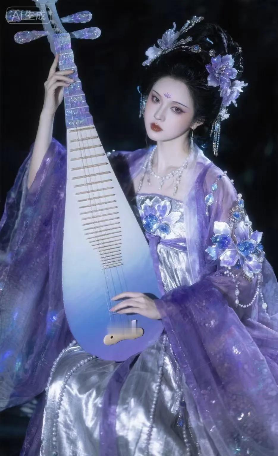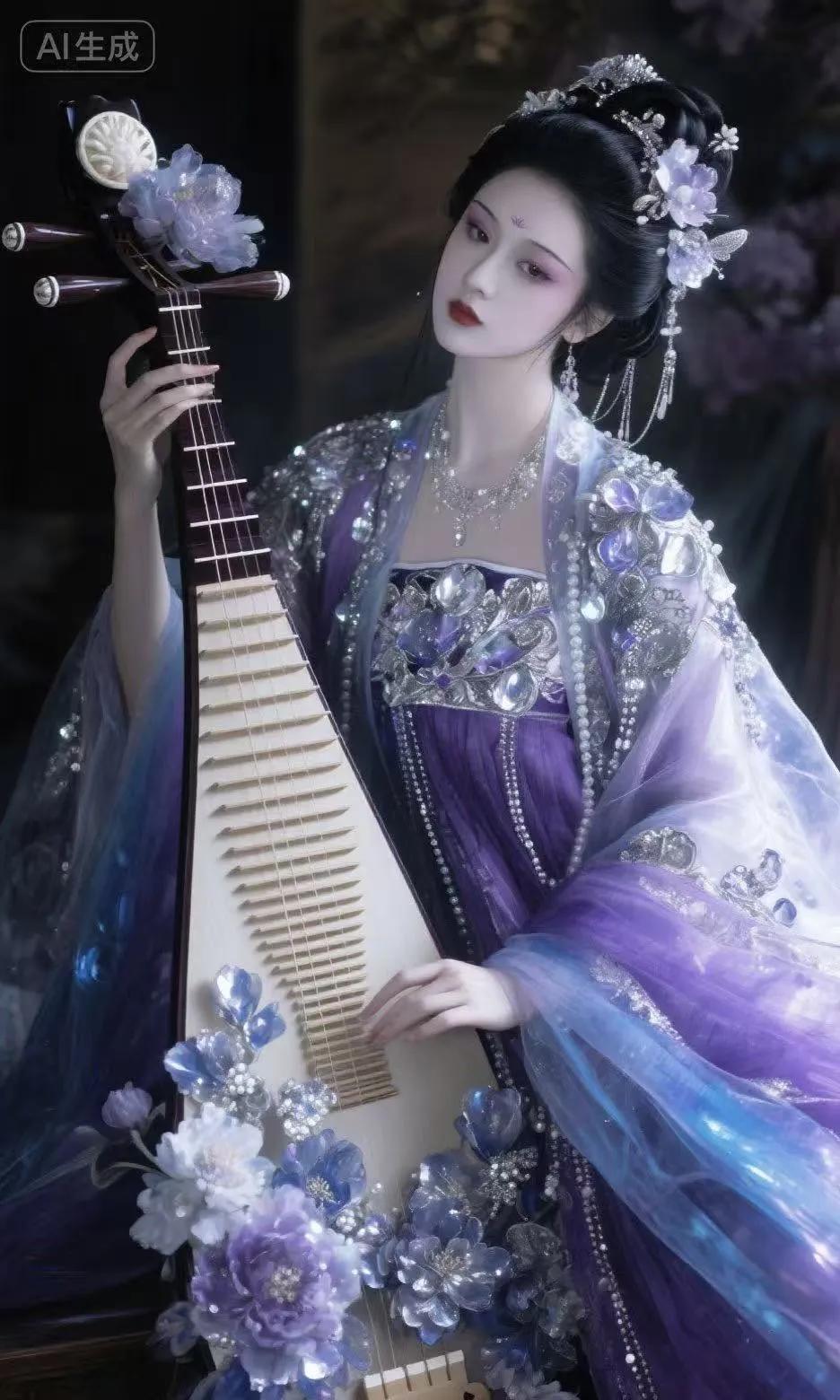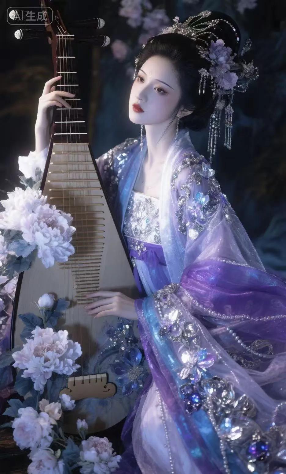 弹着琵琶 忧郁的神情 惹人怜爱