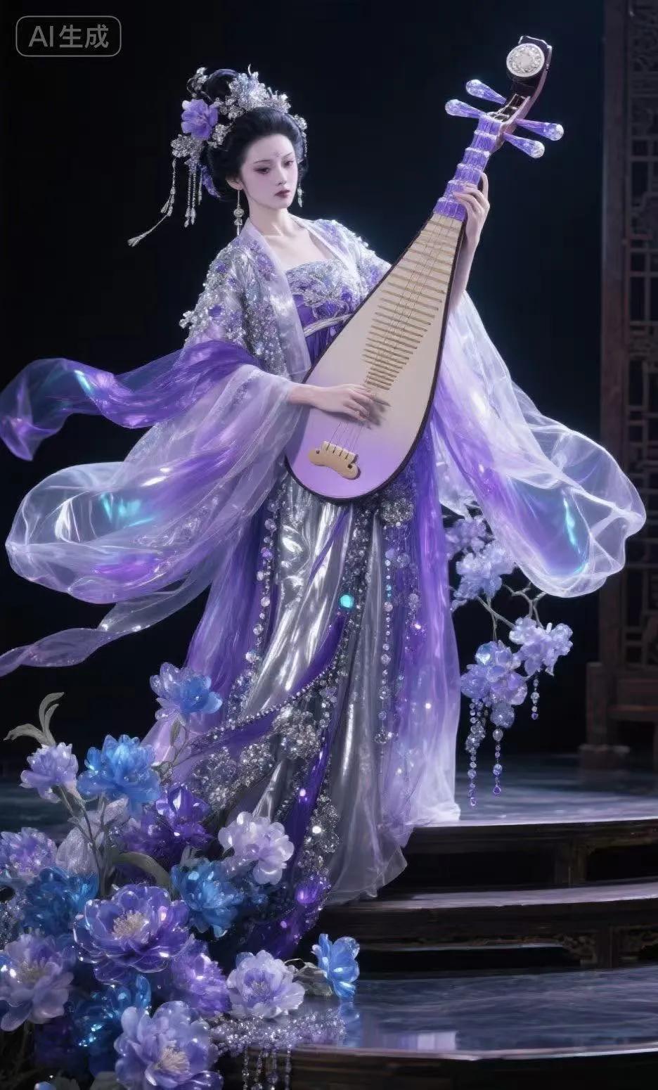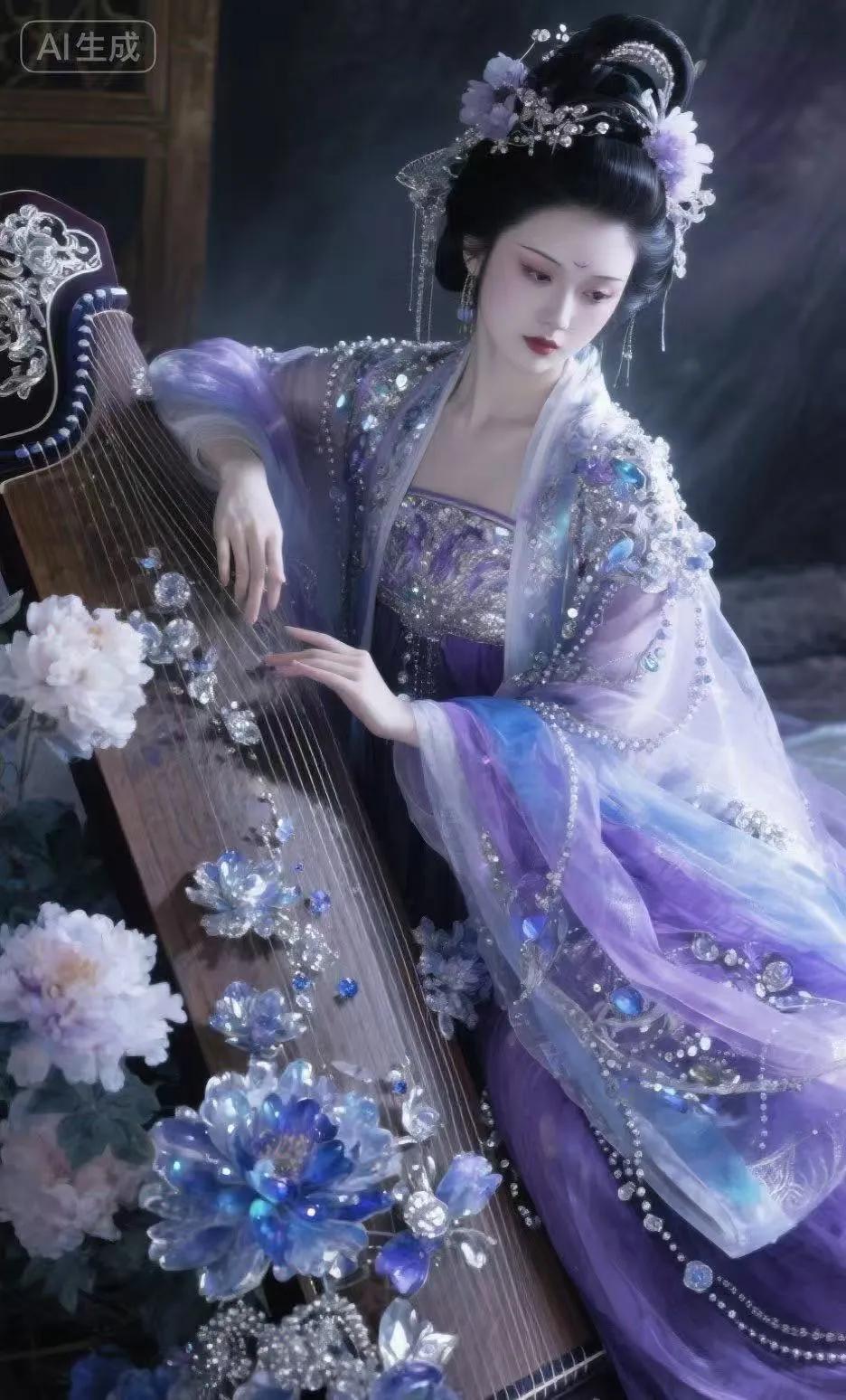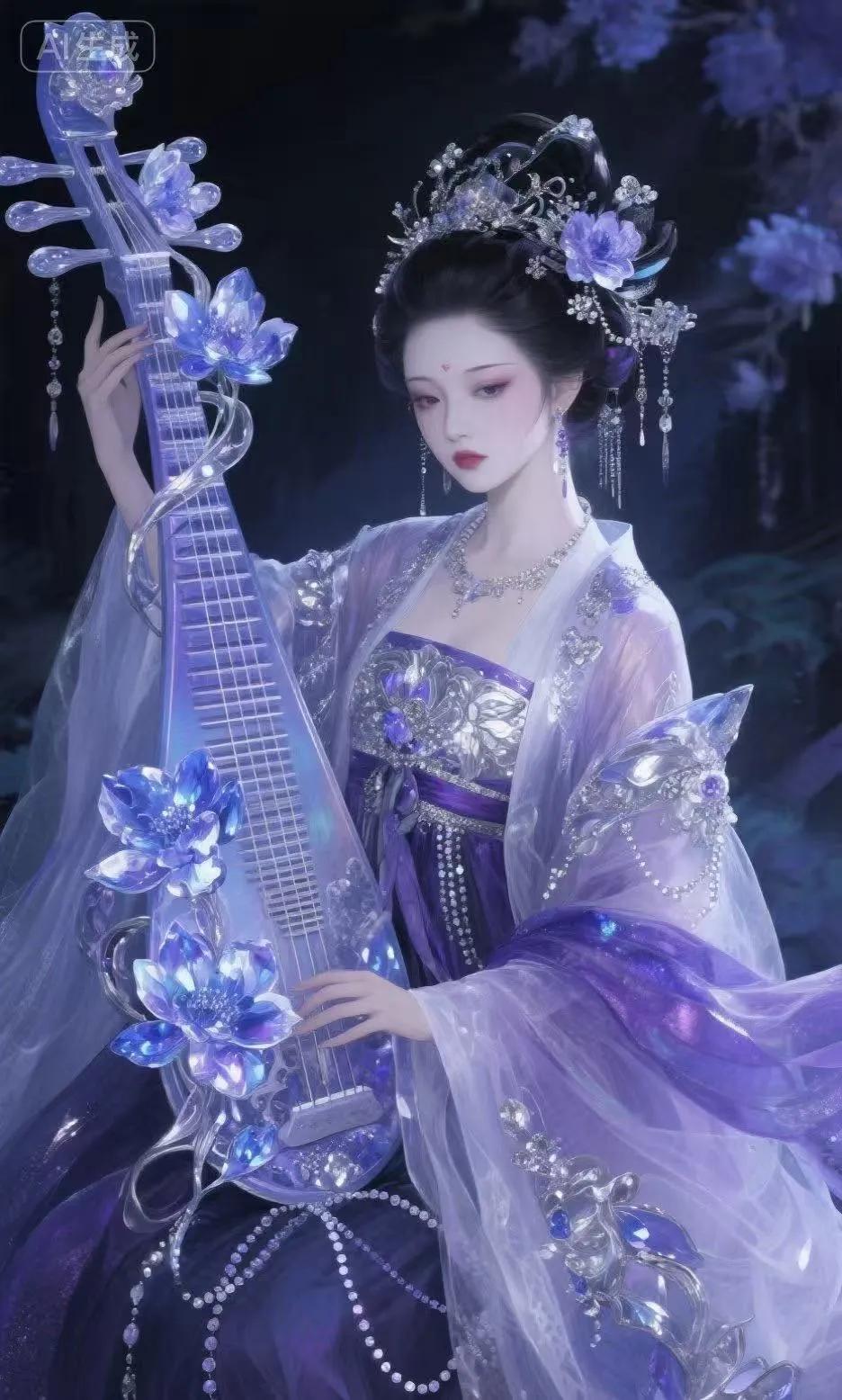 弹着琵琶 忧郁的神情 惹人怜爱
