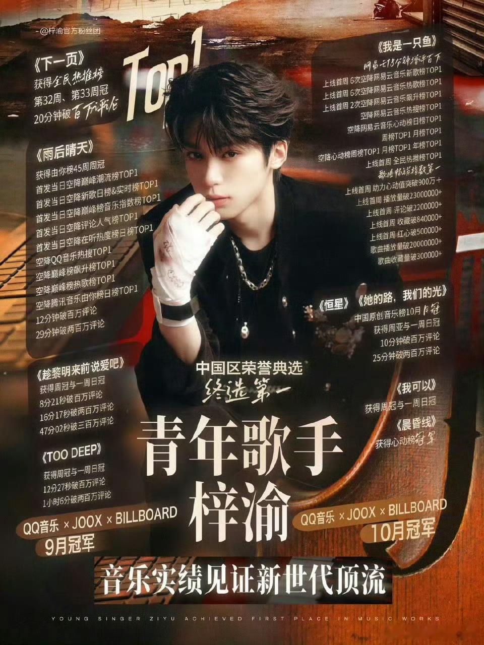 梓渝获2025最高产歌手,恭喜梓渝呀!往后的日子继续冲,别回头!!!梓渝202