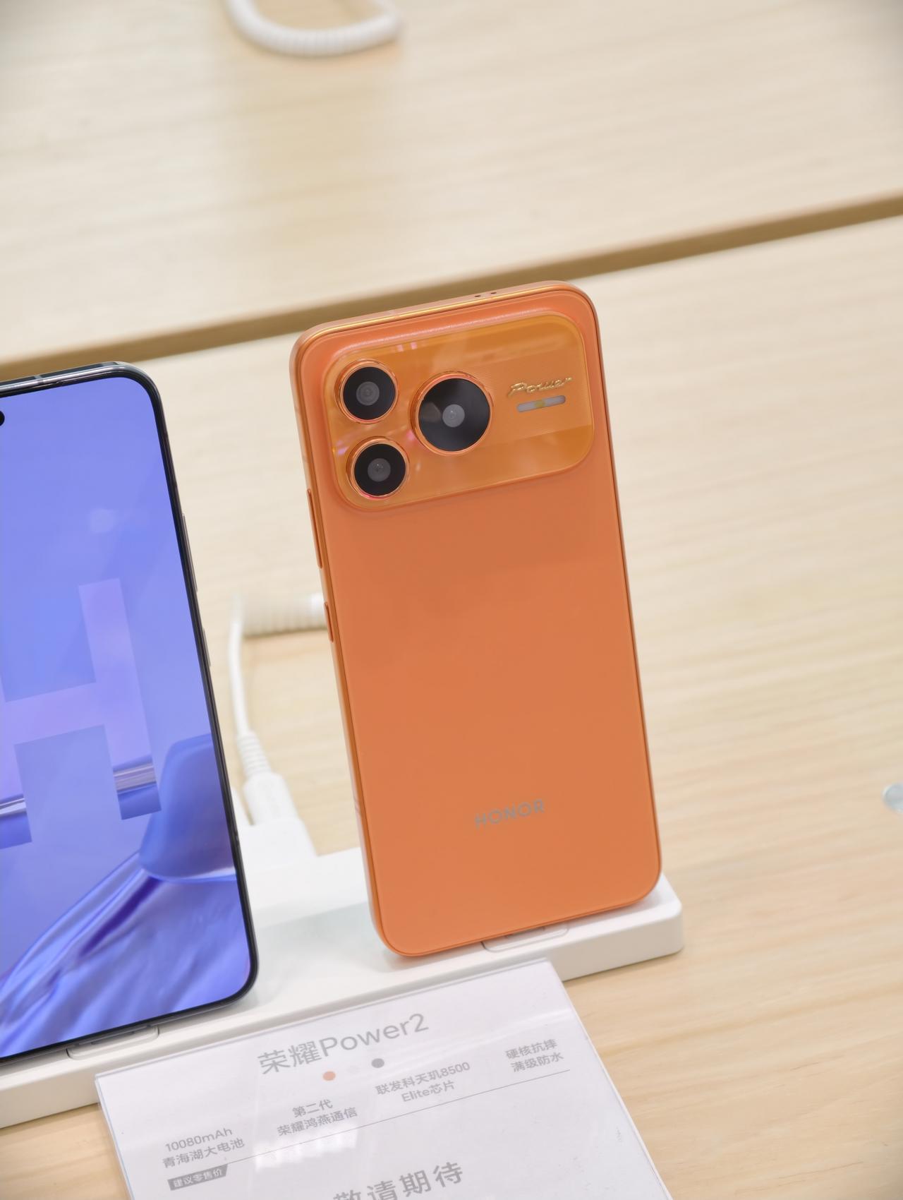 荣耀17 Pro Max,不是,Power2摸到了,门店已经有展示机。 10080mAh的超大电池,相当的离谱。而且真机手感还可以,完全不厚,甚至还能算有点薄。 这个造型跟iPhone 17 Pro Max,相当像了有没有,特别这个橙色[灵光一闪] 不是17 Pro Max买不起,而是Power2更有性价比。