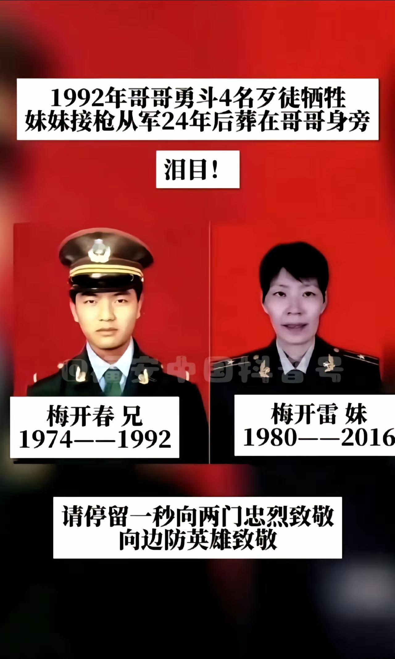一门忠烈两英雄。致敬梅开春、梅开雷兄妹俩,看的让人心痛。请善待英烈家人,善待英烈