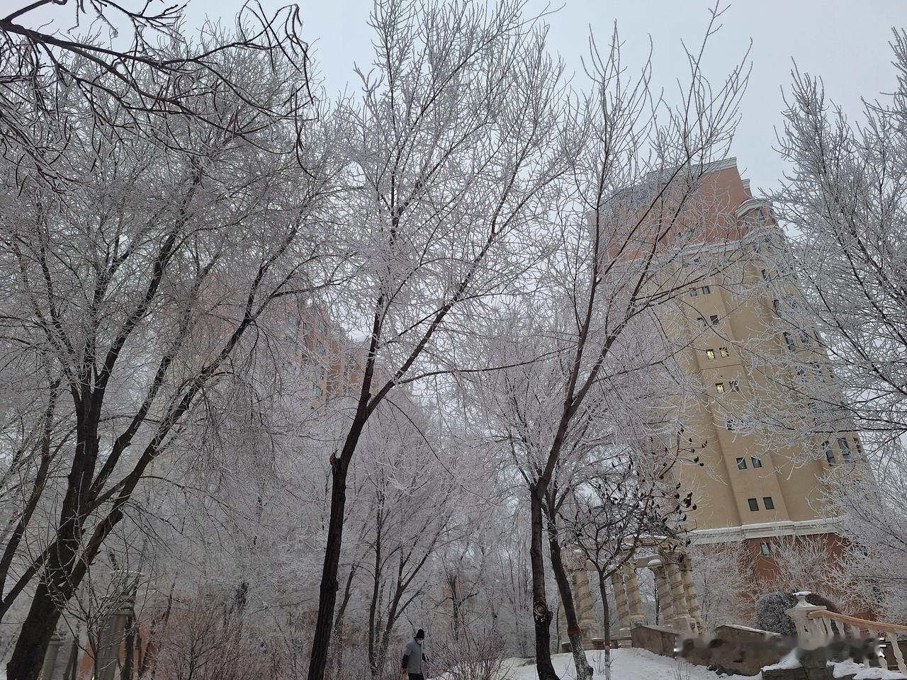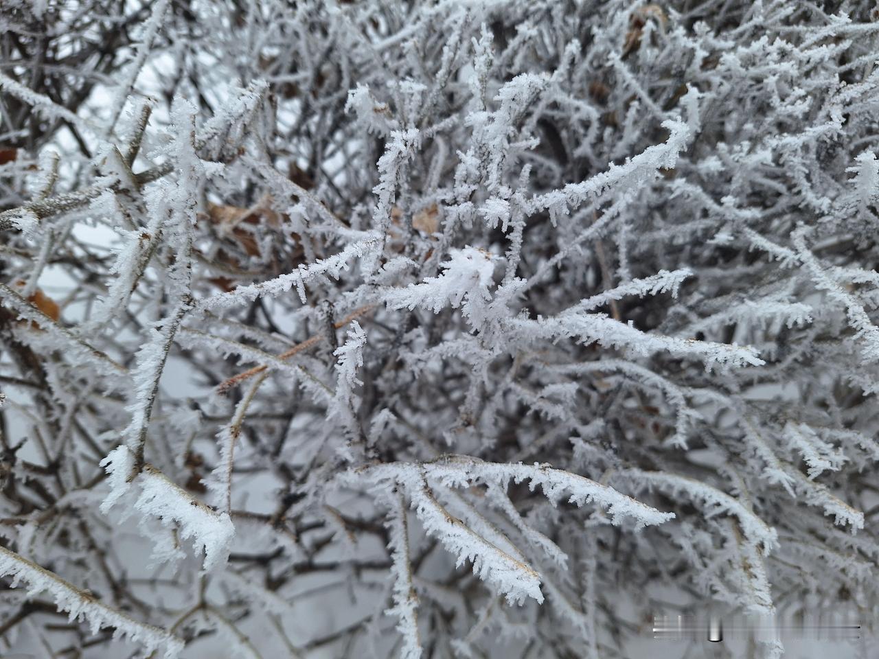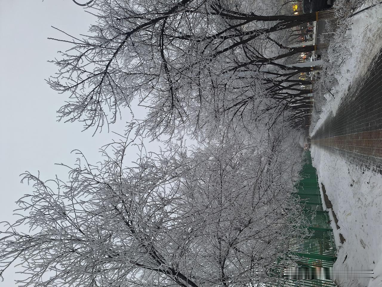 据不完全统计,有五天没见太阳了,不知他老人家是否安好?倒是这雾凇天天见。一位要求匿名的气象专家透露,要湿度大于55.8%,温度低于零下9,才会形成雾凇。我此前只在西藏米林的雅鲁藏布江峡谷、哈尔滨松花江等有限地方见过。