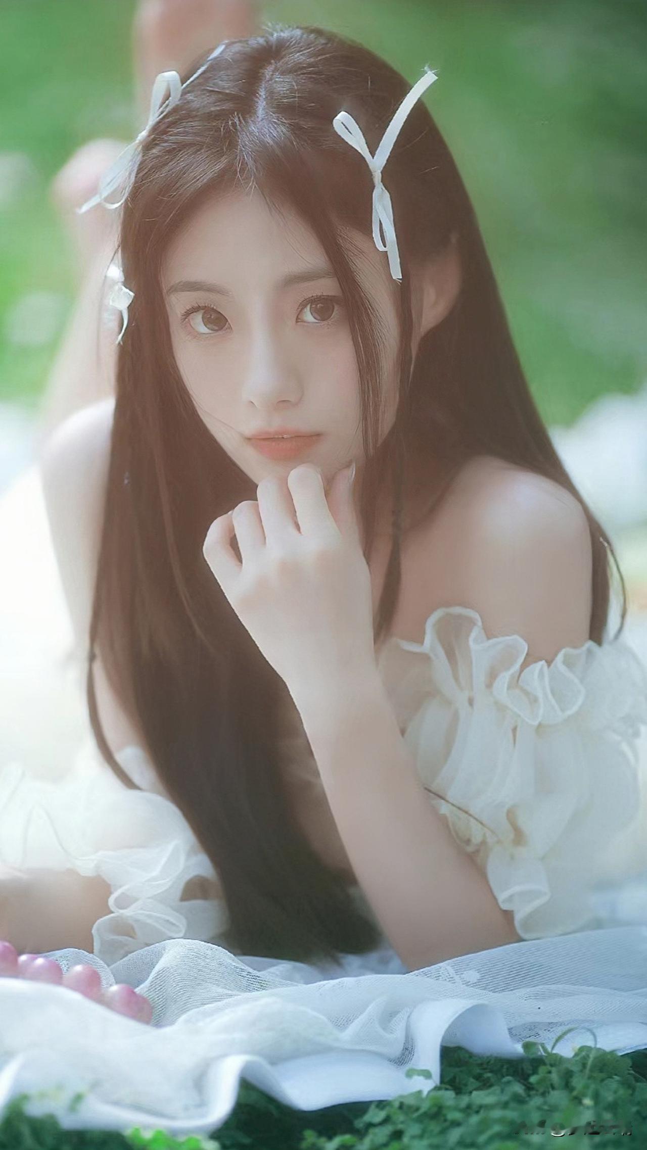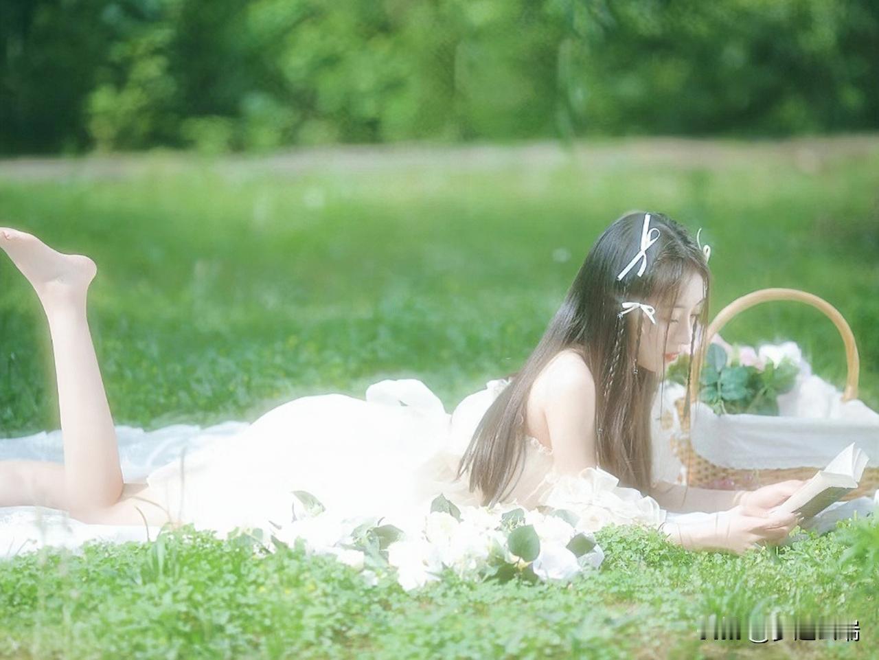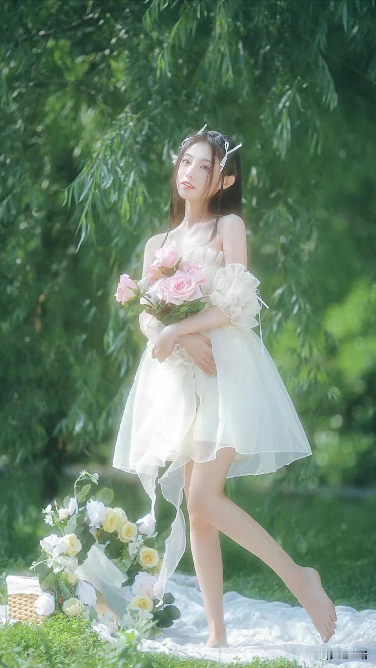 梦幻花园中的甜美少女,手捧粉色玫瑰,宛如童话中的公主。