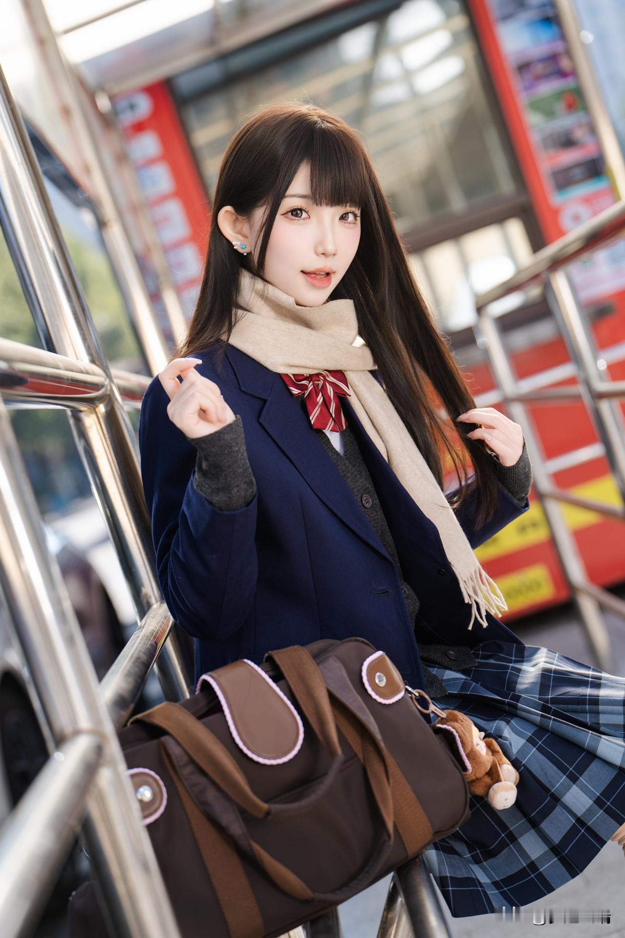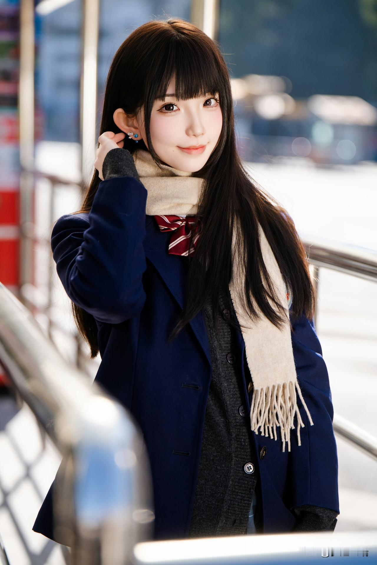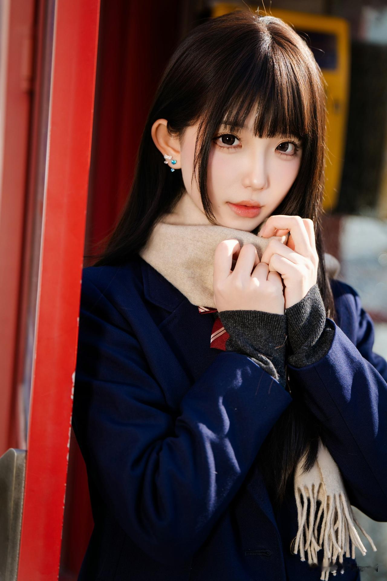 冬日暖阳下,甜美少女轻抚围巾,温柔动人。🌞💕
