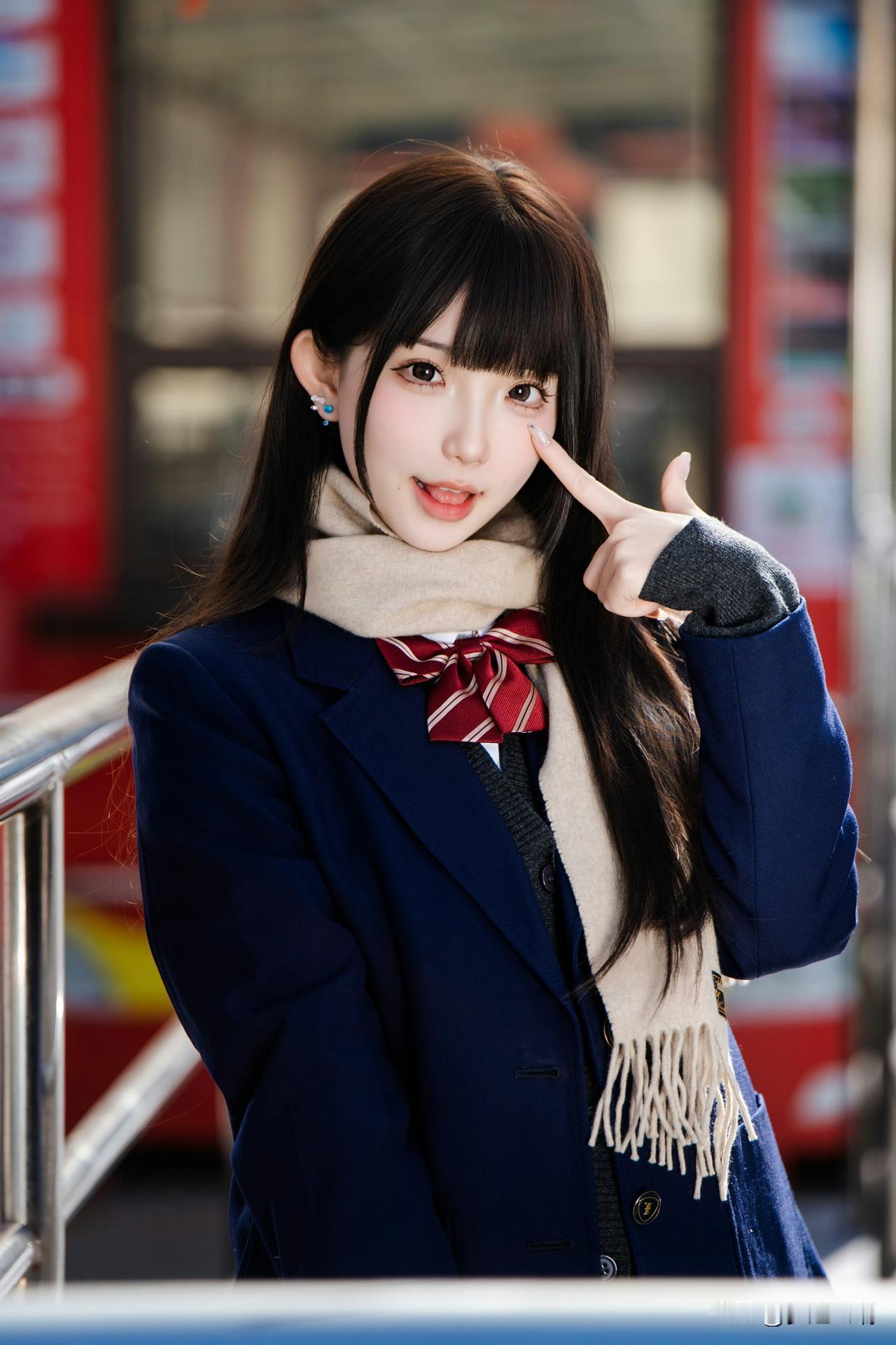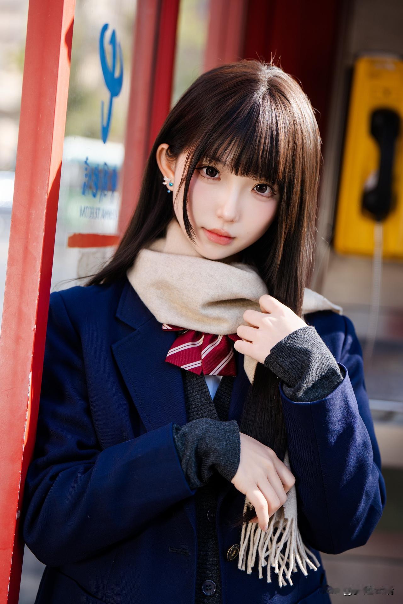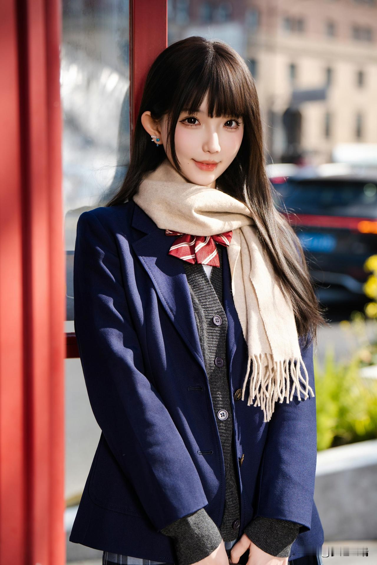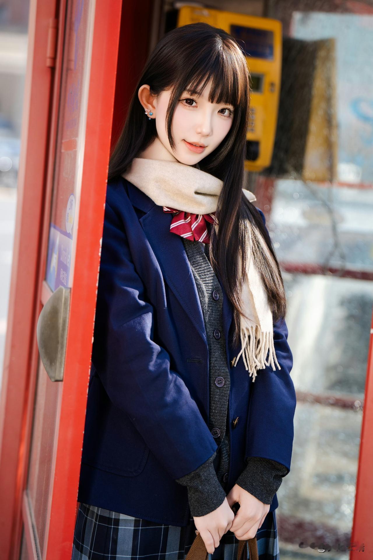 冬日暖阳下,甜美少女轻抚围巾,温柔动人。🌞💕