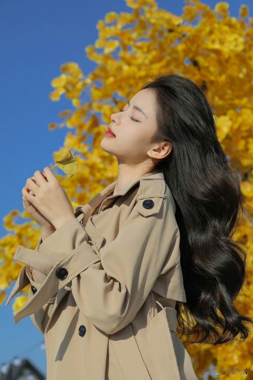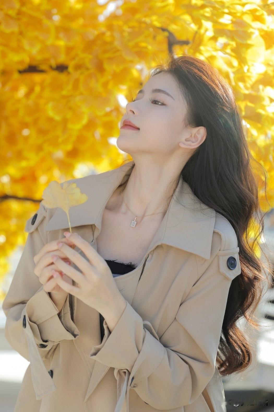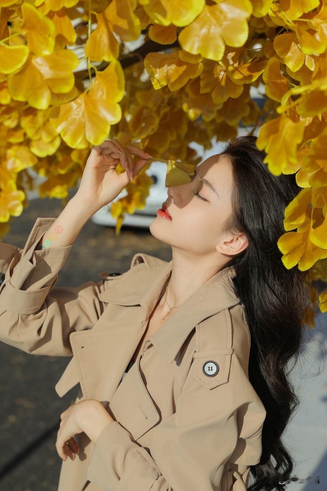 秋日暖阳下,落叶轻舞,温柔的她,如诗如画。