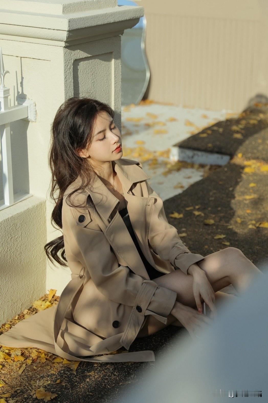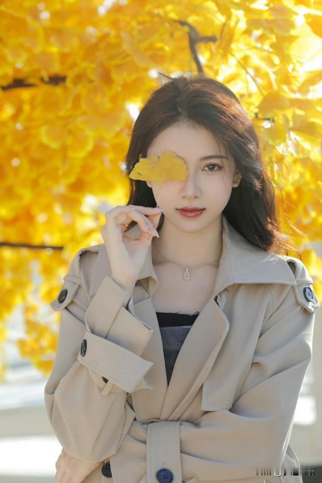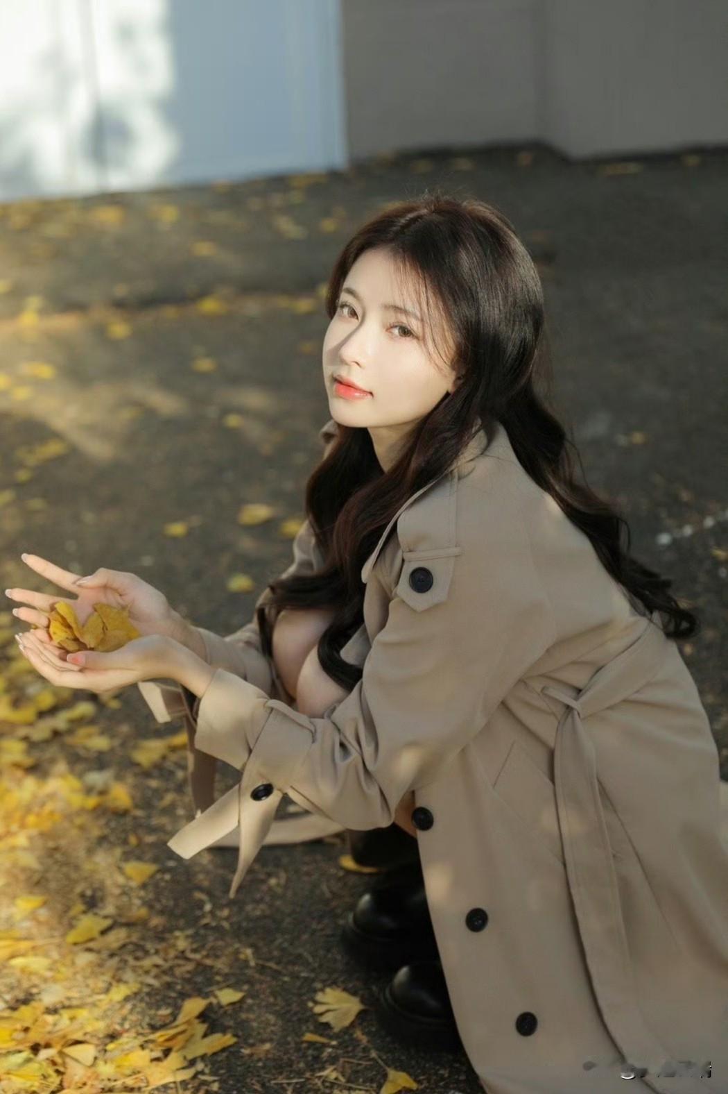 秋日暖阳下,落叶轻舞,温柔的她,如诗如画。