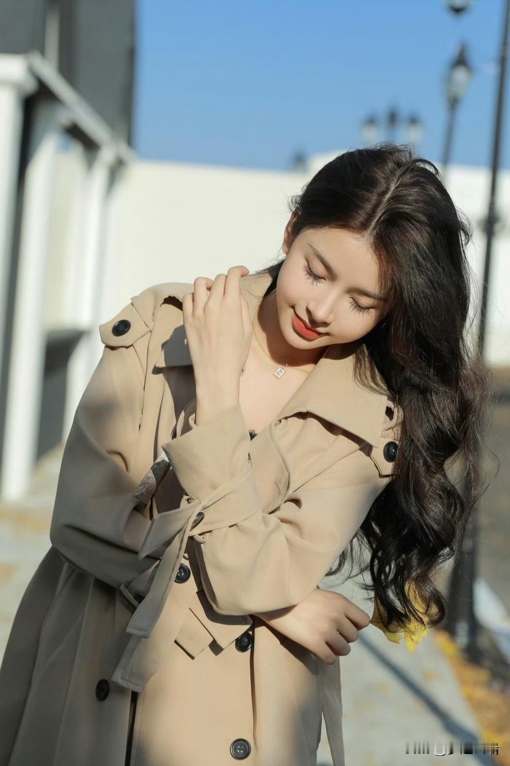 冬日暖阳下,甜美少女轻抚围巾,温柔动人。🌞💕
