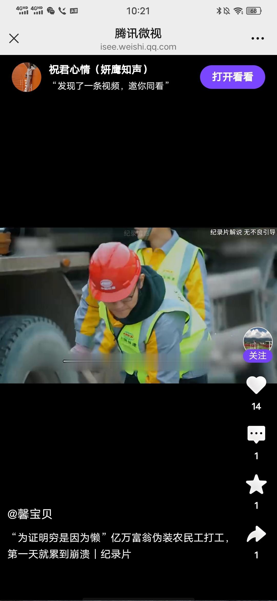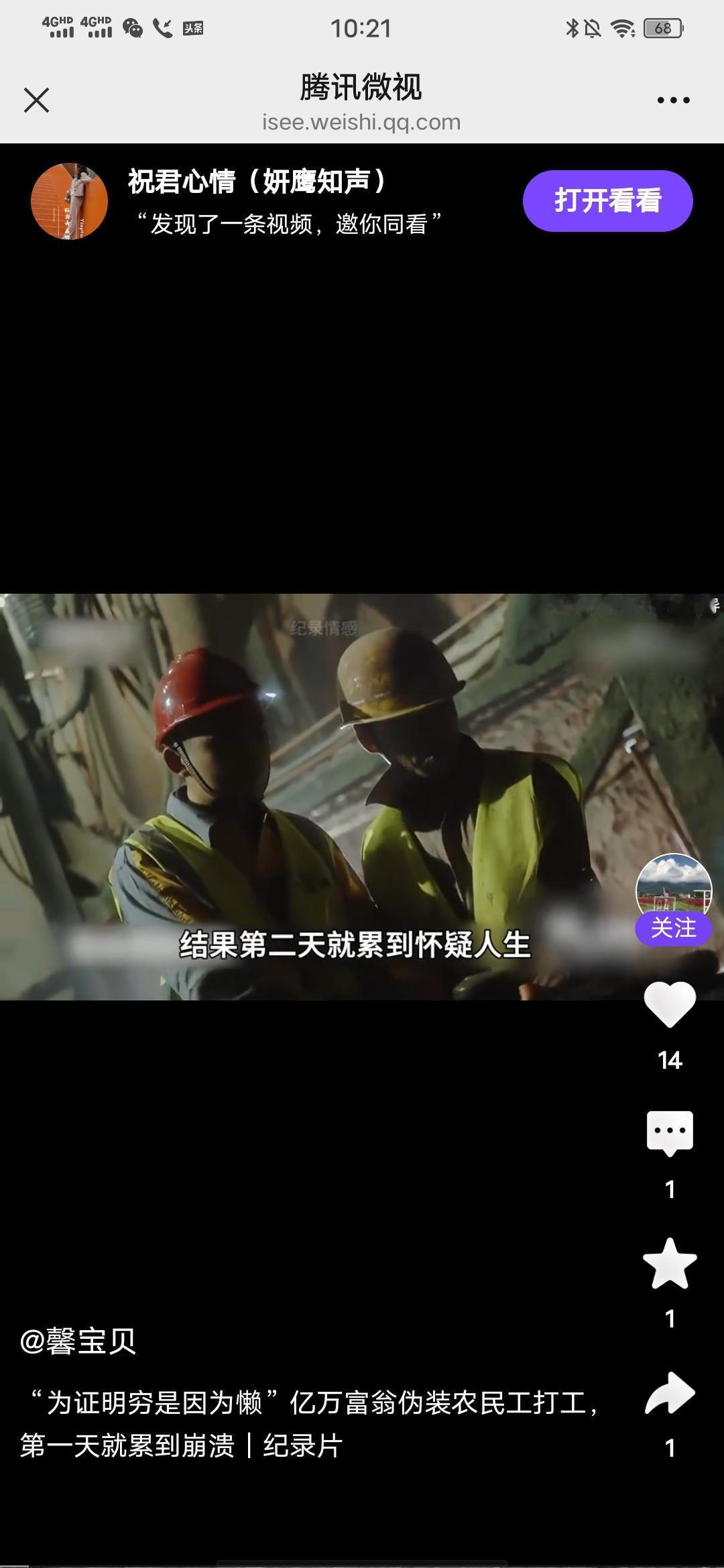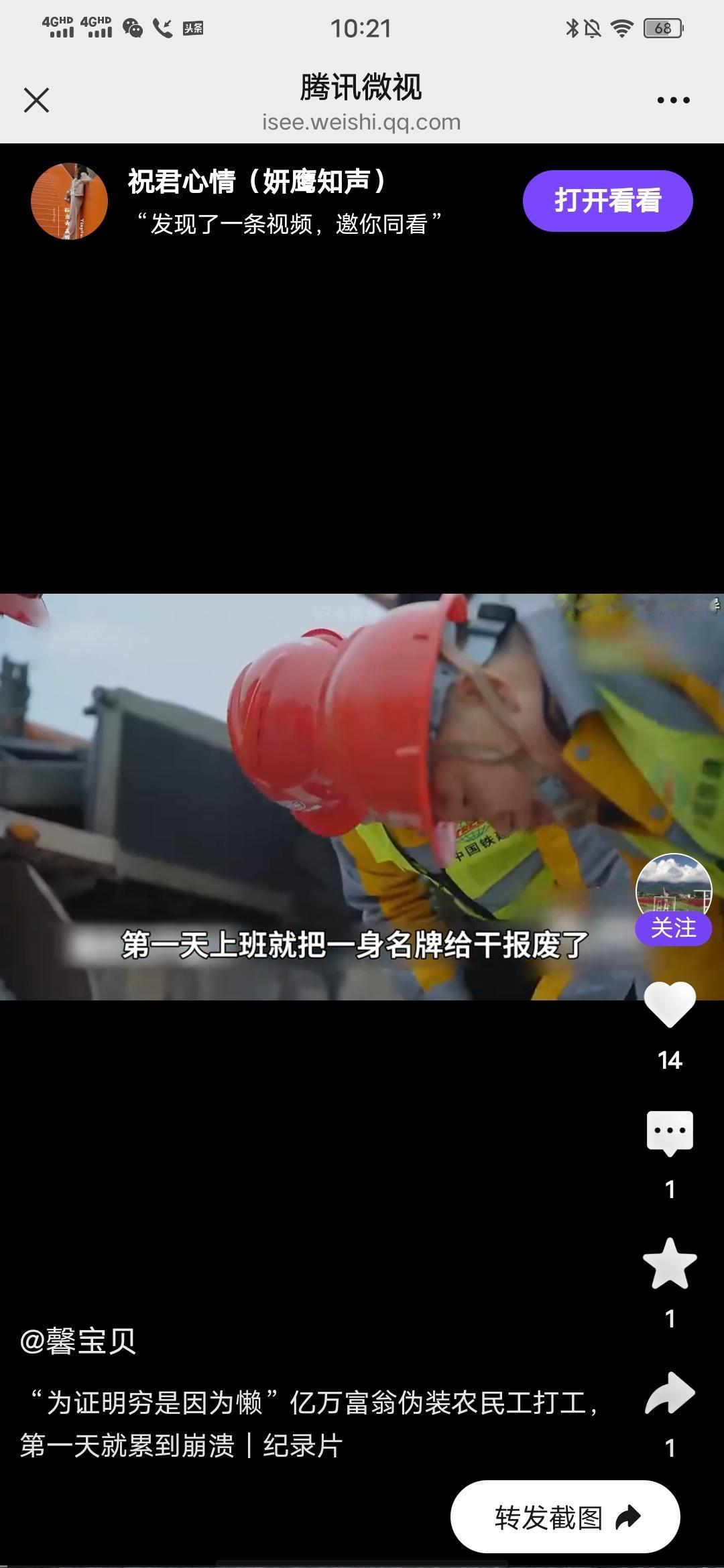 “为了证明穷是因为懒”38岁亿万富翁伪装农民工打工,第一天就累到崩溃。 刚看了一个自媒体账号的纪录片,一个叫王翌身价几十亿的懂事长,为了体验基层劳动者的生活,为了证明穷是因为懒,他义无反顾参加了央视举办的一档纪录片的拍摄,乔装成一名普通农民工,跟1000名工友同吃同住。 铁路工地上有一名20岁的叫吴运国的小伙子,出生在平潭岛一个极其贫困的家庭,母亲天生聋哑,父亲靠种地维持生活,下面还有个正在上小学的弟弟,他的心愿就是治好妈妈的病,为了给妈妈治病,让妈妈听到他喊她妈妈,但是靠在家务农是根本无法实现的,所以才念完高一的吴运国就辍学出来打工了,希望能挣钱给妈妈把病治好。 王翌的到来,让吴运国不相信他能吃下这份苦,因为一看他双手就知道从前没干过粗活,可能是家里发生什么事?有担心他住不惯,所以对他多加照顾,夜晚的工棚几乎跟室外是同一个温度,害怕王翌冷,害怕他住不习惯,吴运国很自然地把取暖的小太阳对着王翌的床。 第二天起床,王翌就被眼前的工程震撼到了,所以,他对接下来的工作十分期待,他接到的第一个任务就是混泥土取样检测,不复杂,但极其考验耐心和责任心,可对于养尊处优惯了的王总来说,这不是一件轻松的体力活,他说长时间重复同一个动作真的很累,腰也很酸,而这只是开始,后面的坍落度测试更是让他累到崩溃。 接下来的几天工作下来,他终于感叹,不知道像吴运国这样的小年轻怎么能够坚持下来。而且为了赚得更多,小吴完成接到的任务后,还会在空余时间去隧道跟其他师傅学习打钻,风枪一百多斤,钻头5米多长,这个是要特别细心专业的技术,不能打错的。为了省钱,他三年没有回过家,过春节时大家都想回家跟家人团聚,但是工地得有人守,于是小吴主动自荐守工地,目的是能节约路费,他说只要能帮到家里,再累再苦他也能坚持干下去。 王翌终于认识到了这千千万万农民工的伟大,后来他主动帮助小吴解决了母亲治病的问题,还让一家人在他公司团聚。 所以说,很多人没有经历过人间疾苦,总是站在自己的认知和角度里去做出判断是不合理的,他们有托底的,从一开始就是含着金汤匙出生的,或者从事的行业决定的,总之起点都不一样,做出的判断和评论就都站不住脚,就都是缺乏见识,带有偏见。身处高资位,认知更要提高,评论更需客观。 祝愿大家都所愿皆所得吧!