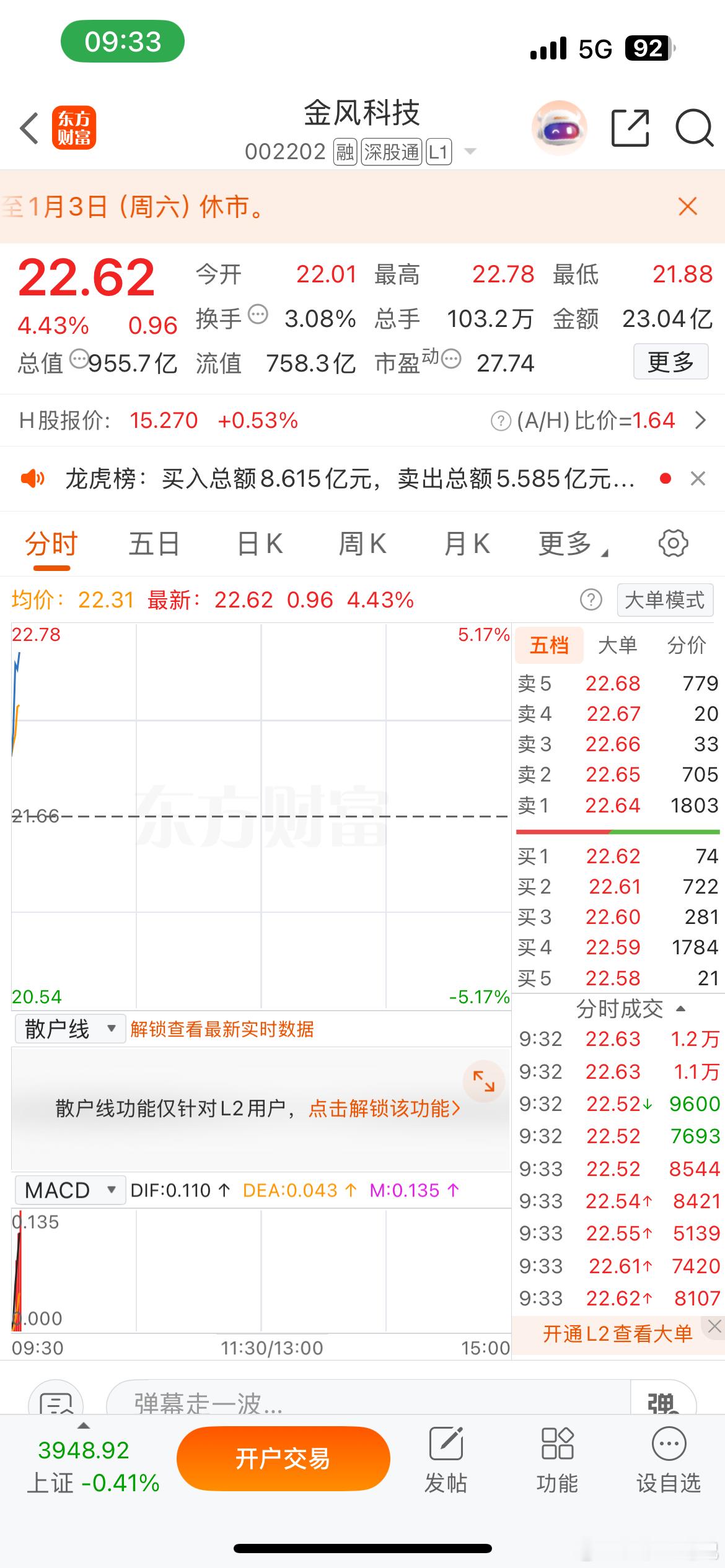 兄弟们,金风科技今日能否直冲云端呢,让我们拭目以待~