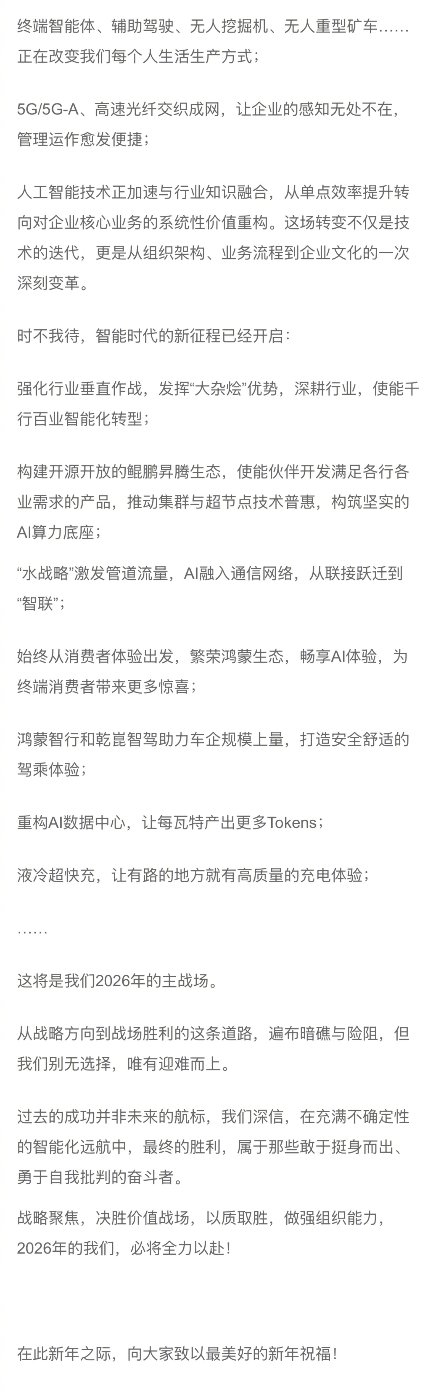 孟晚舟新年致辞谈华为2026战略最戳我的是致辞里的手语工程师——我有个远房表姐是听障人士,之前找售后总因为沟通不畅犯难,去年她换了鸿蒙设备,说现在能直接用手语跟客服对接,不用再麻烦家人翻译。原来那些“克服专业术语挑战”的细节,真的能给少数人搭起“无声的桥”。我自己用鸿蒙设备快一年,手机碰一下就能连平板传文件,这种“顺手”背后,是工程师从“第一单外卖”开始磨的体验。看到2026要让鸿蒙生态更繁荣,还挺盼着能出个适配听障用户的智能手表,给表姐买一块,她出门联系家人能更方便。