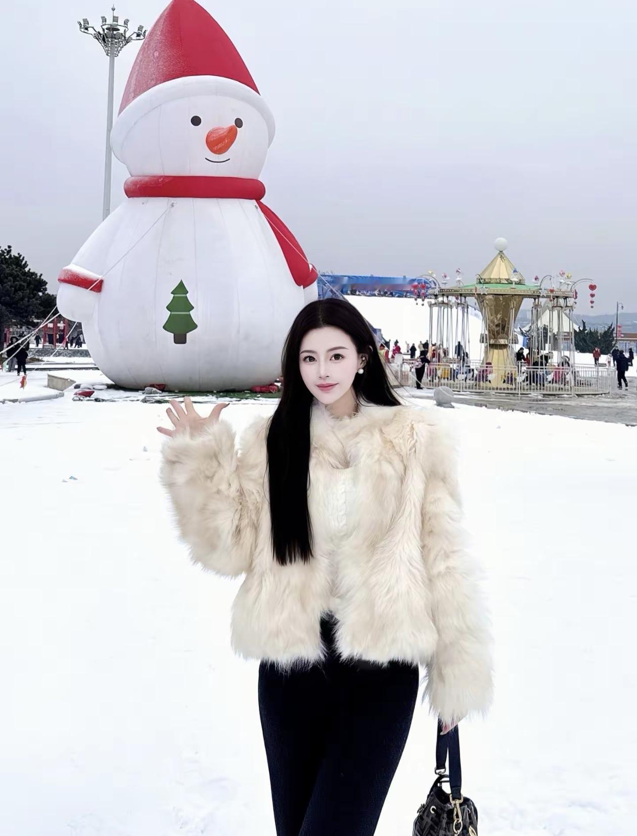 温柔冬日穿搭,毛绒外套+长直发,自拍时刻📸✨