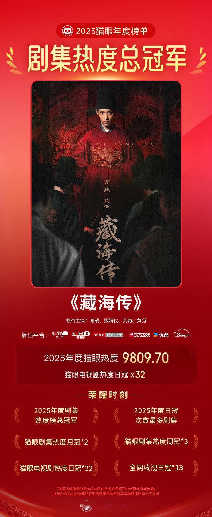 肖战《藏海传》成为猫眼2025有效播放冠军以及热度总冠军,也就是今年的剧王
