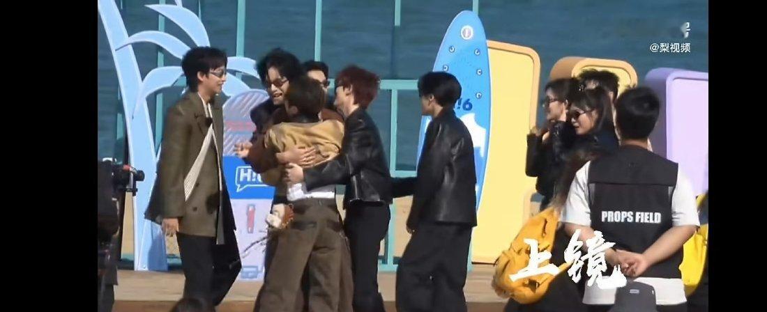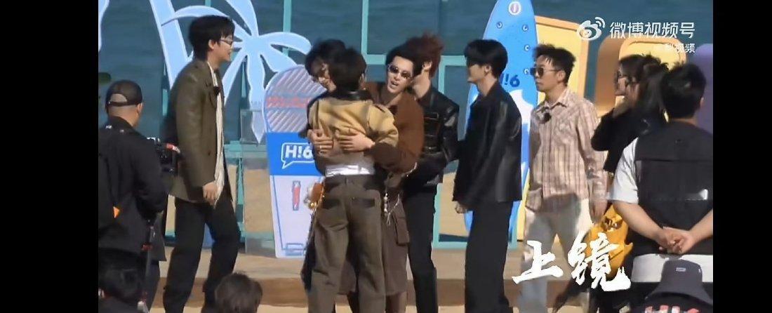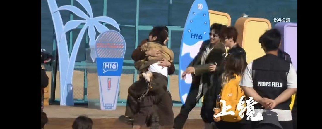 何炅挂在王鹤棣身上 何老师腿都挂上了,他太爱太宠溺棣的了