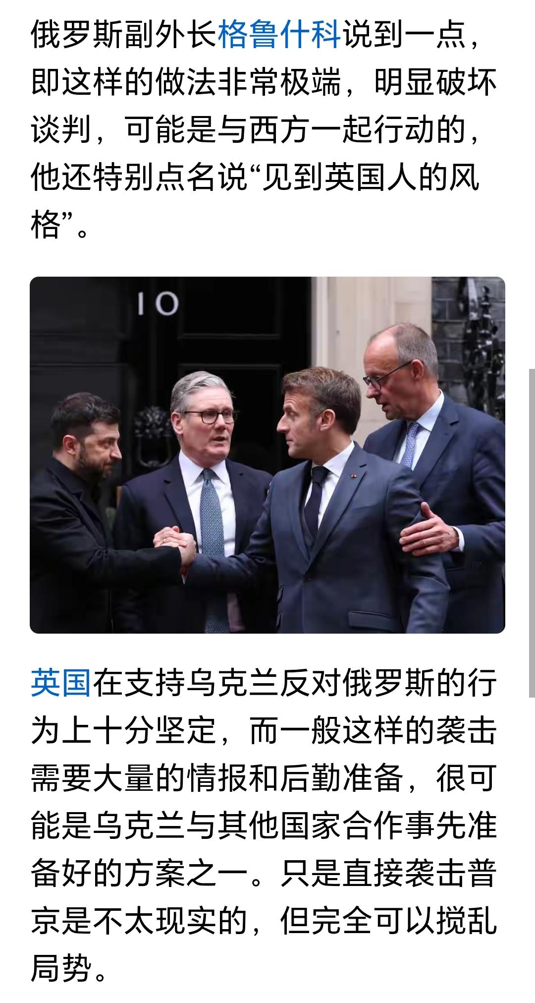 乌克兰91架无人机攻击普京官邸,这个可就过分了,这简直就是国家恐怖主义了。 但是,这是一个罗生门。 俄罗斯说这是乌克兰干的,泽连斯基说他不知情是俄罗斯自导自演。俄罗斯副外长说这里有英国佬的做事风格,那就是詹姆斯邦德出了力哦?[奸笑] 这个事说复杂也复杂说简单也简单。 看两个背景:美国和乌克兰已经快达成谈判,英国在俄乌冲突刚开始本来可能停下来的时候在乌克兰背后推了一把。 这件事是足以又加剧俄乌冲突的恶劣行为。 那么问题来了,现在谁最不想俄乌停战? 美国?税宗在争取和平奖。 俄罗斯?现在战略目的差不多已经达到,并没有想并吞整个乌克兰。 乌克兰?已经打不下去了,唯一的诉求就是如何体面收场。 当事人和调解人都想停火,那么谁不想他们停火? 谁想欧洲乱谁想欧洲衰落,这件事就是谁干的。 别看我,我没有,不是我,别乱说![笑哭][笑哭][笑哭] 点右上角关注我,我们一起去看这个魔幻的世界