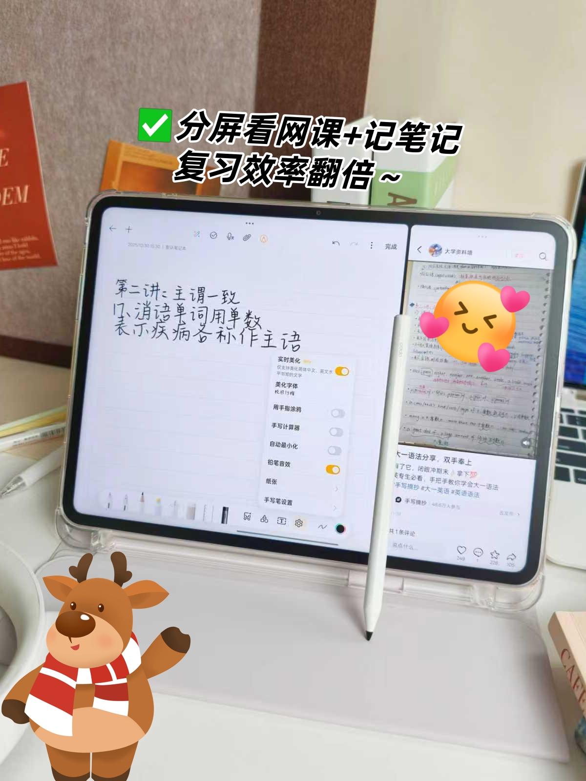 期末周直接回本!平板简直是复习开挂神器 元旦之后就是期末周了,最近天天泡在图书馆 就想着临时抱佛脚,期末考试能不挂科😭 没想到这波复习把我整懵了,现在平板都这么牛了? OPPO Pad Air5简直是期末战神,本拖延症亲测太好用了👇直接让我效率翻倍! 1⃣️分屏看网课+记笔记 OPPO Pad Air5这块大屏很实用,左边放着老师的讲解视频,右边直接用笔在笔记APP里划重点、写批注。不用来回切换,知识点串联得超快,复习思路都清晰了,效率翻倍谁懂啊! 2⃣️AI字迹优化 为了赶时间,有时候记笔记太潦草,自己都不认得是什么字..这平板搭配自带手写笔,写字能一键优化成工整的字体,再也不用担心课后自己都认不出笔记了,整理起来超省心。 3⃣️AI超级截取 看网课的之后,可以直接从视频里截图,圈出想要的图表、资料,就能秒提文字插入笔记,不用自己费时间手抄,复习更得劲! 💻最后重点夸夸OPPO Pad Air5那块柔光屏,图书馆顶灯下看也不反光,而且看屏幕一整天,眼睛也不会累得发酸!这平板简直就是学生党复习开挂神器,感觉期末复习一周直接回本了😂 大学生平板电脑期末复习OPPO Pad Air5