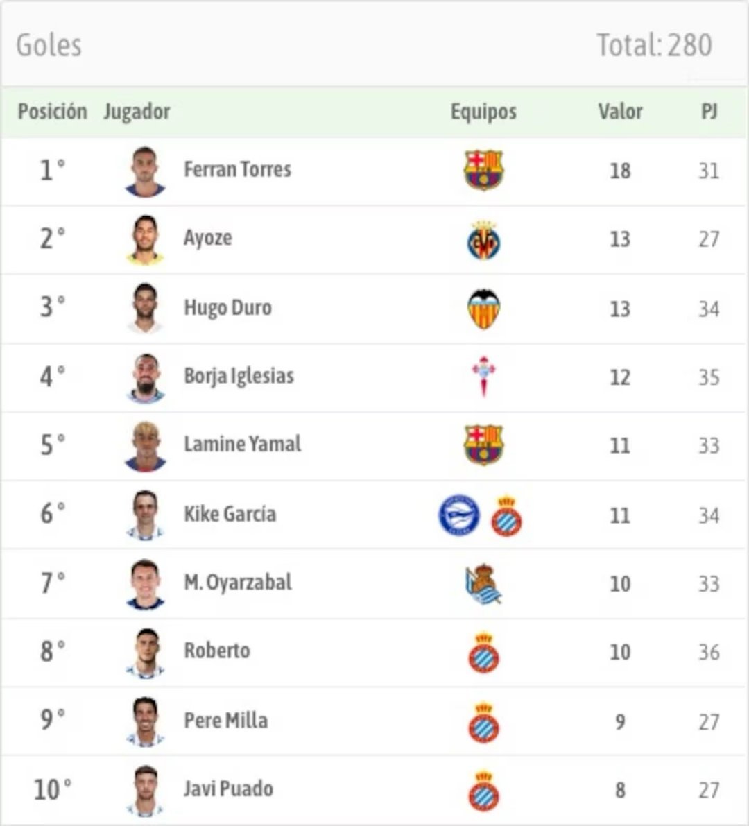 阿斯报:2025年西甲联赛西班牙射手🇪🇸 费兰在31场比赛中打入18球,位列榜首⚽️巴萨体育大赏至死不渝红蓝魂