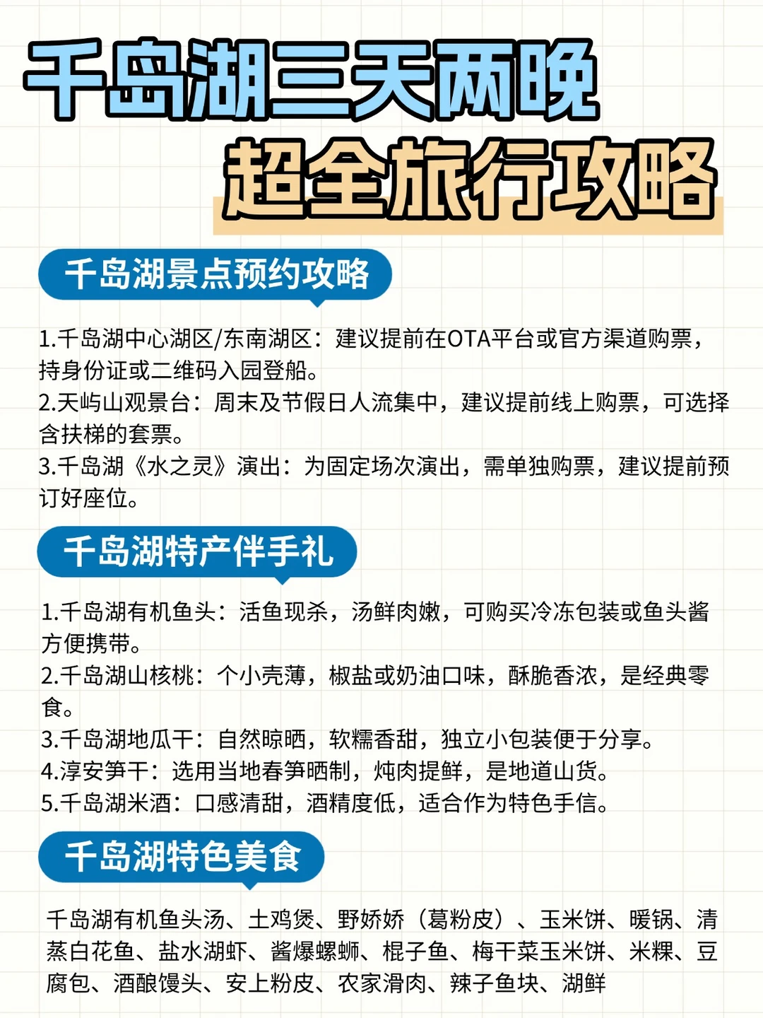 上午直奔中心湖区码头,乘船游览梅峰岛+渔乐岛+月光岛,梅峰岛登顶俯瞰千岛全景,船上就能搞定午餐🍜