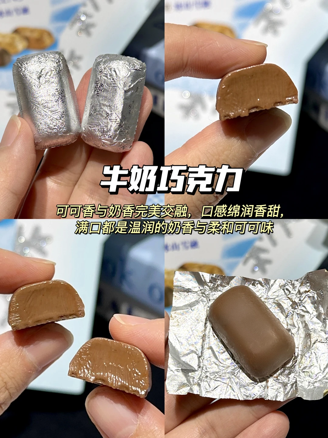 🥛牛奶巧克力:可可香与奶香完美交融,口感绵润香甜,满口都是温润的奶香与柔和可可味;