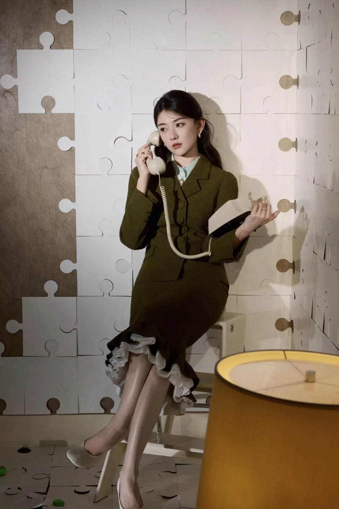 白衫是薄瓷的容器盛着心跳与呼吸绿裤是柔韧的藤缠裹着骨骼的倔强~柳丝拂