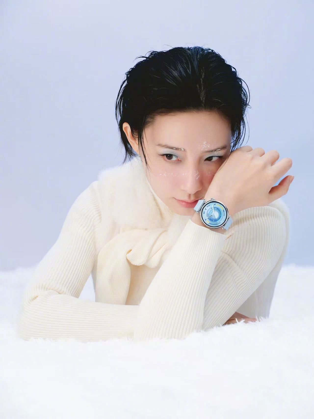 李斯丹妮冰雪蓝精灵滑雪季妆容模板速存!李斯丹妮化身冰雪蓝精灵,冰蓝眼妆+华为WATCH GT 6冰蓝腕表,雪场出片率直接封神~李斯丹妮冰雪蓝妆容好仙