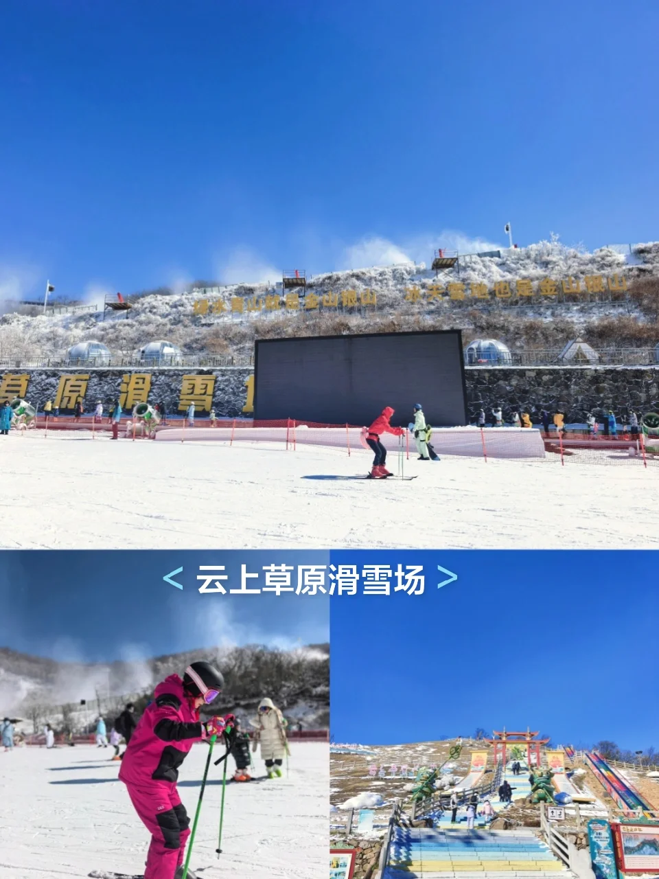 云上草原滑雪场位于海拔1000多米以上,有初中高级雪道,8条雪道已全面开放。,体验在高山上滑雪的快乐~