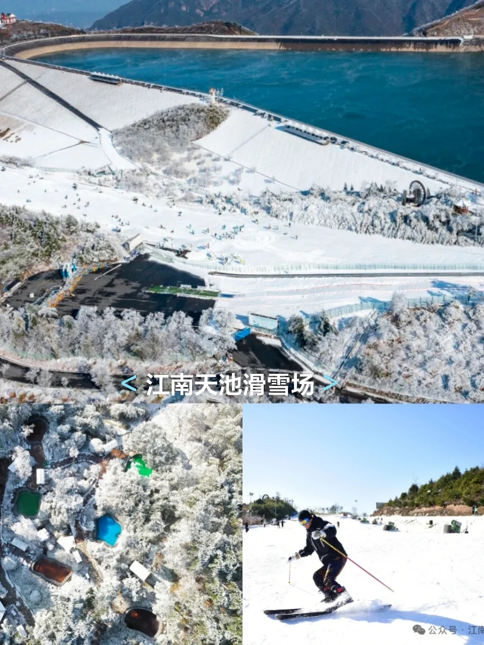 依托江南天池景区,以山峦翠竹和天池为背景,风景优美。滑雪场全长近 800 米,落差 40 米,总面积 6 万多平方米,设有 2 条初级道、1 条中级道、 1 条高级道。滑雪场还有40多个高山汤泉泡池可以泡汤。