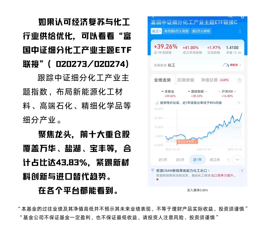 如果认可经济复苏与化工行业供给优化,可以看看“富国中证细分化工产业主题ETF联接”(020273/020274)