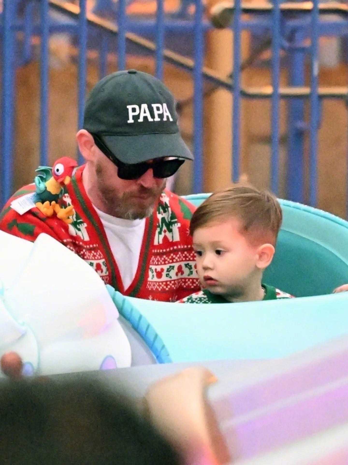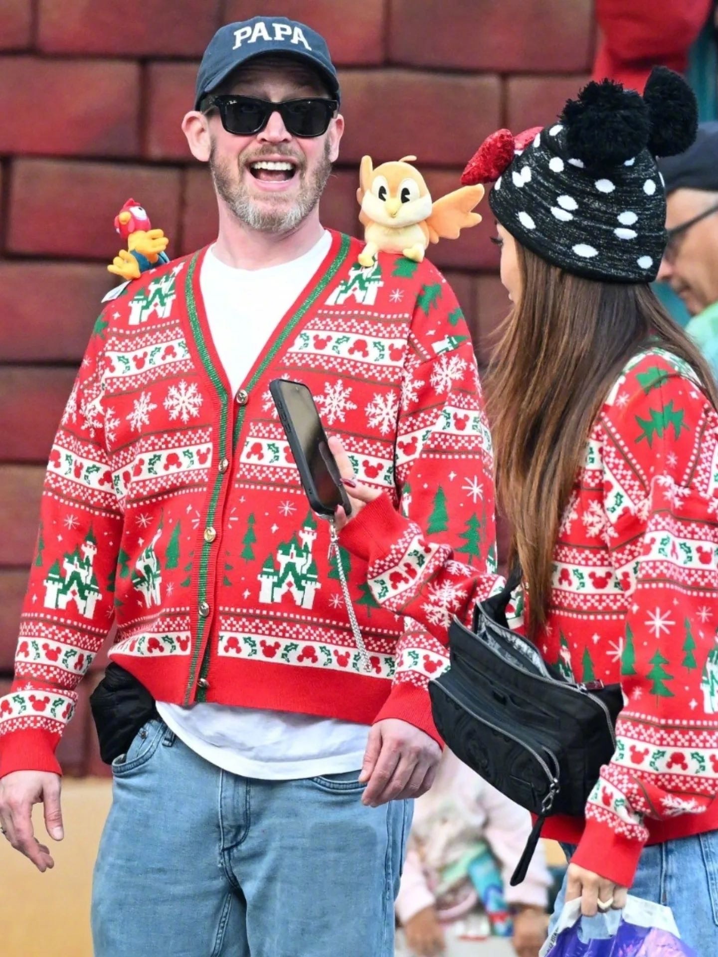 《小鬼当家》的麦考利·卡尔金 和未婚妻Brenda Song 带着两个儿子 Dakota 和Carson,穿着圣诞毛衣现身迪士尼。老大是爸爸的翻版,老二有点像妈妈!