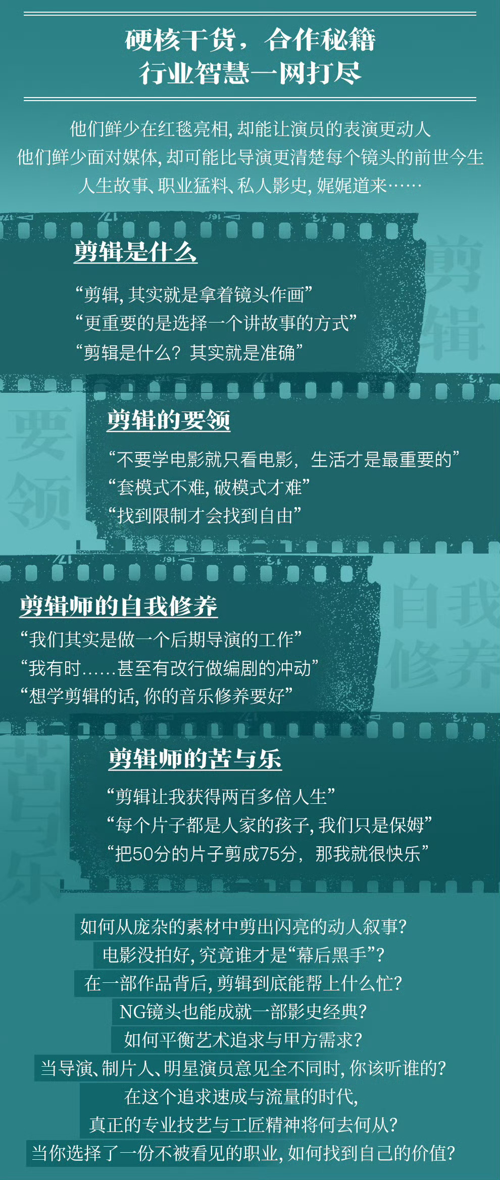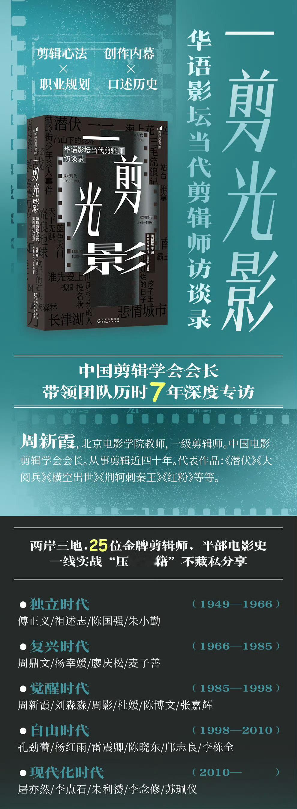 【抽奖送书】后浪电影新书《一剪光影——华语影坛当代剪辑师访谈录》!转发+关注,抽2位铁粉各送一本!《一剪光影》这本由北京电影学院导演系历时7年、精心策划的独家访谈录,聚焦的就是这群幕后英雄。诸位受访者,是张艺谋、陈凯歌、王家卫、徐克、侯孝贤等大导演的得力伙伴,参与书写《霸王别姬》《牯岭街少年杀人事件》《悲情城市》《阳光灿烂的日子》《站台》的影史传奇,见证从手工匠艺到工业体系的技术演进与代际传承;从《三毛流浪记》的胶片剪接台,到《流浪地球》的数字工作站,他们始终是银幕时空的“隐形建筑师”。◎ 两岸三地,25 位金牌剪辑师,半部电影史,一线实战“压箱秘籍”不藏私分享◎ 鲜为人知的剪辑室“真心话”与“大冒险”,重量级华语电影制作独家内幕,首度公开◎ 一部关于热爱与妥协的职业启示录,所有创意工作者的灵感之书