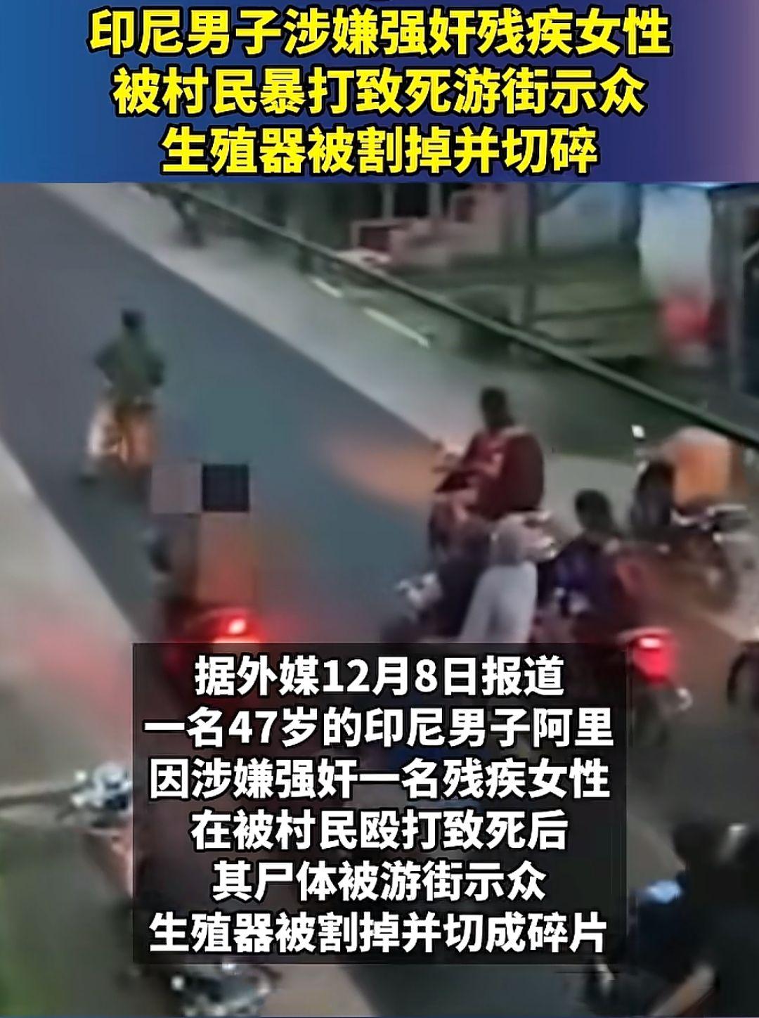印尼男子涉嫌强奸残疾女性,被村民暴打致死游街示众,生殖器被割掉并切碎