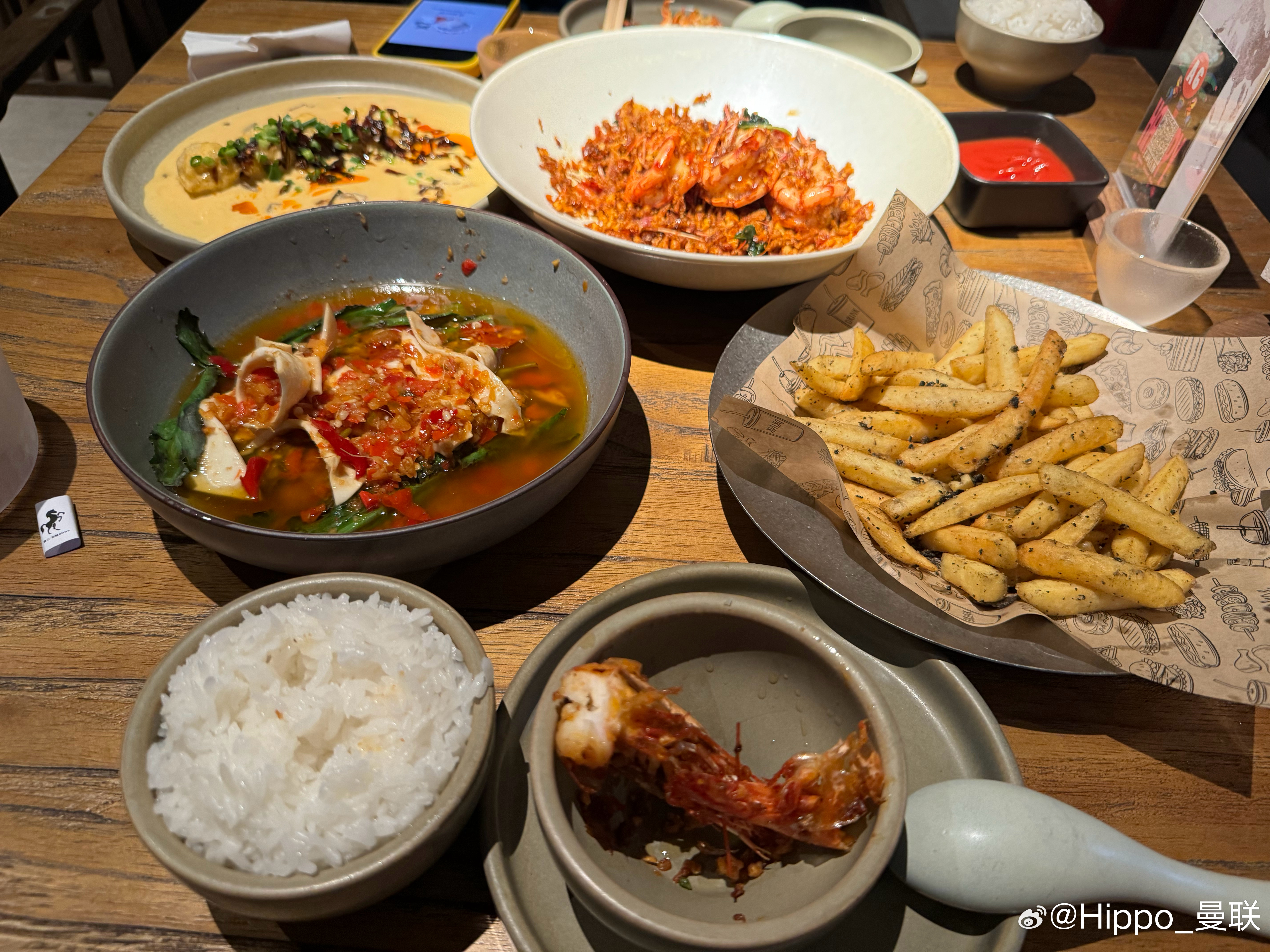 这家店就很有意思(怪)。吃饭的时候有一匹马看着你。 你也不知道是什么菜的组合,因为套餐里有薯条。不过我老婆说酒很好喝。 成都·吃三·牧场Bistro(交子大道店)