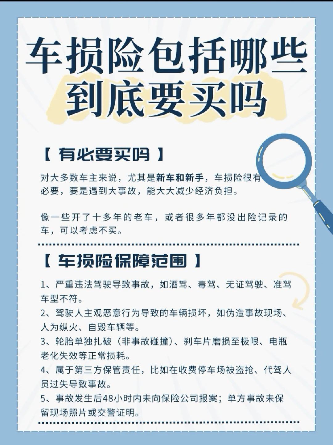 车🚗损险不买有什么问题吗❓车损险是什么❓就是保自己车子的损失具体保障范围见P1新手+新车→必买!小刮蹭修起来肉疼→建议买老车/多年无出险→可以考虑不买我与汽车的日常大v聊车