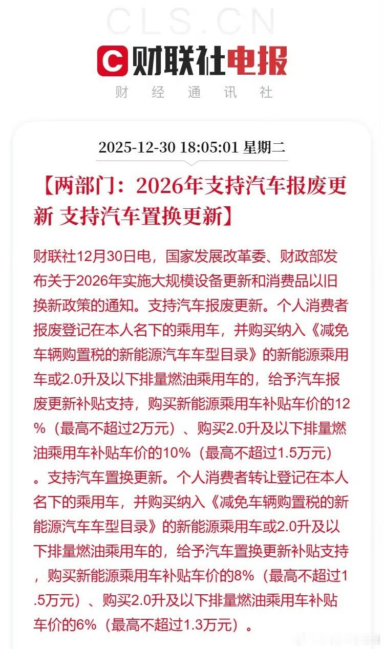 汽车按车价比例进行补贴2026年国补具体规则:手机/平板等:补15%(500封顶)大小家电:补15%(1500封顶)买新能源乘用车:报废补12%(2w封顶);置换补8%(1.5w封顶) 买燃油车:购买2.0升及以下排量燃油乘用车补贴车价的6%(1.3w封顶)。