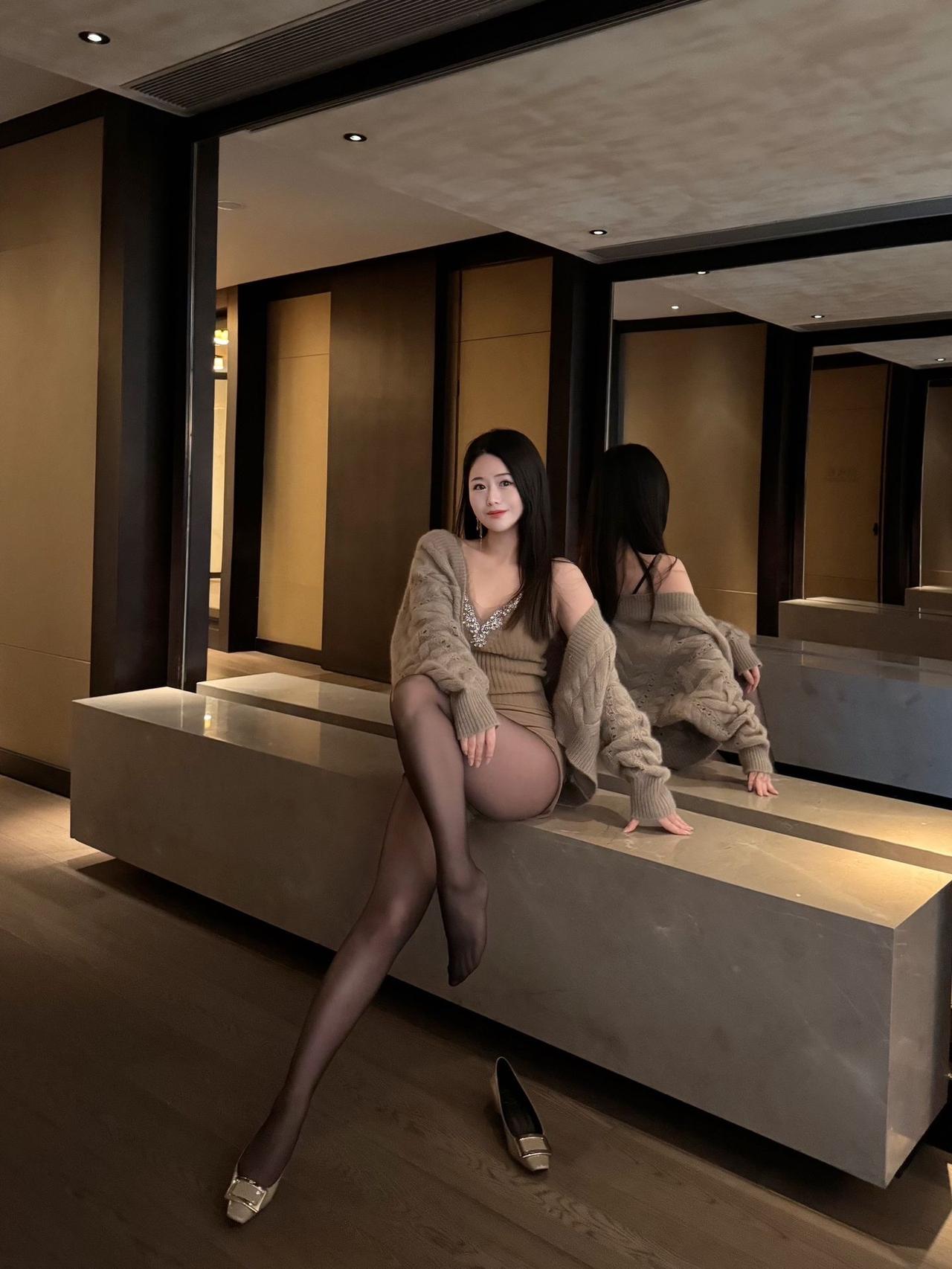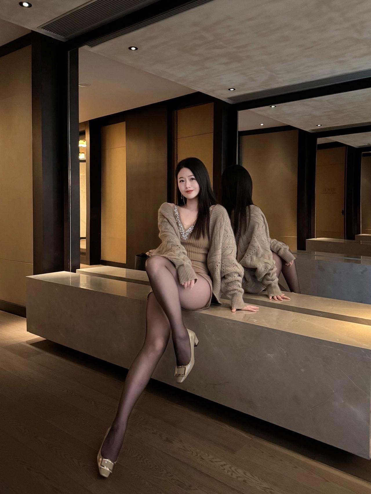 优雅气质,时尚穿搭,镜中倒影,尽显魅力