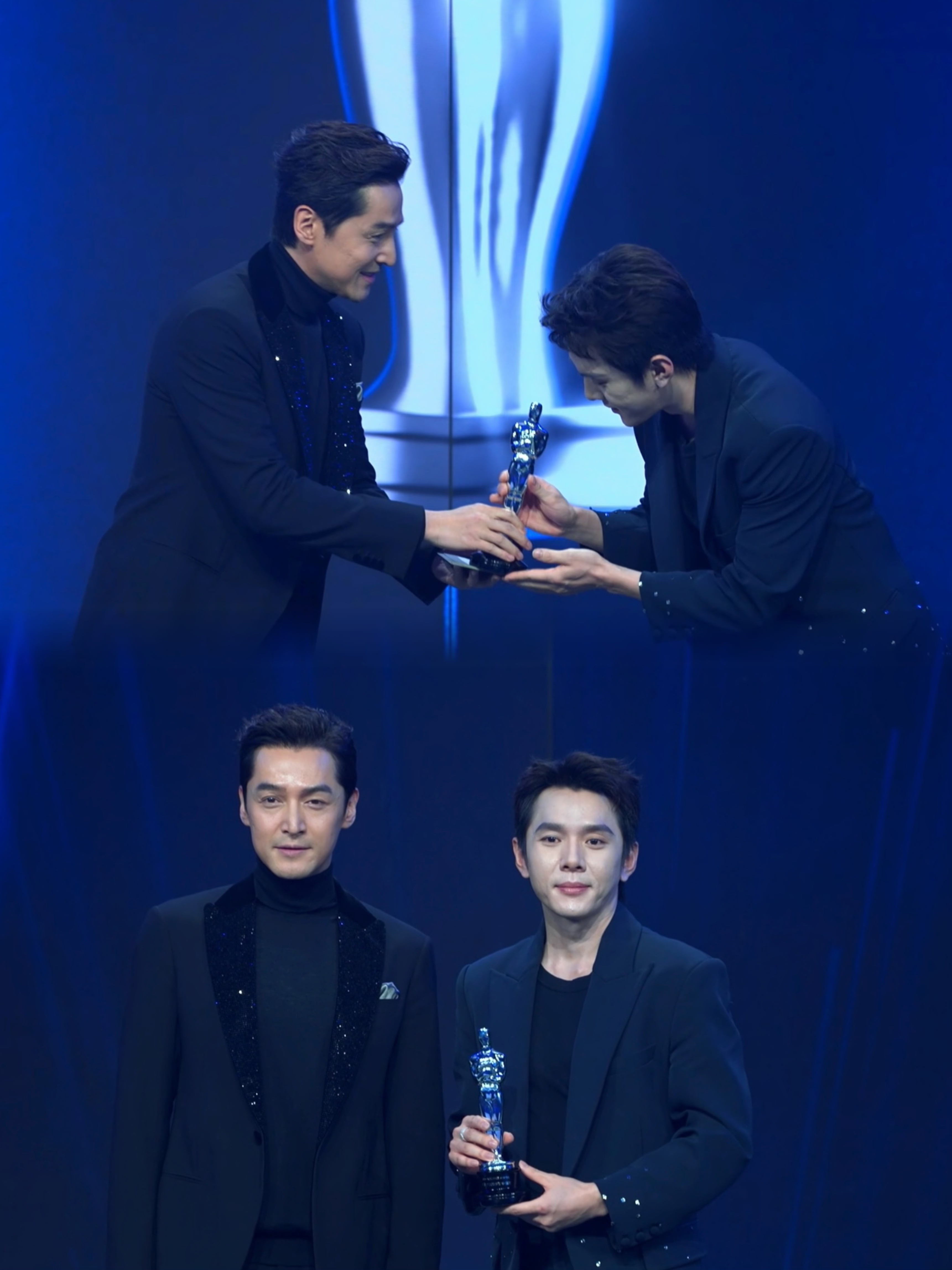 胡歌生图即神图 活动现场的暖心一幕!胡歌身着黑色西装,为李佳琦颁奖时姿态谦和,双手递过奖杯,笑容真诚。李佳琦坦言视胡歌为专业偶像,两人在台上的交流充满了尊重与欣赏,这波互动太有意义了。