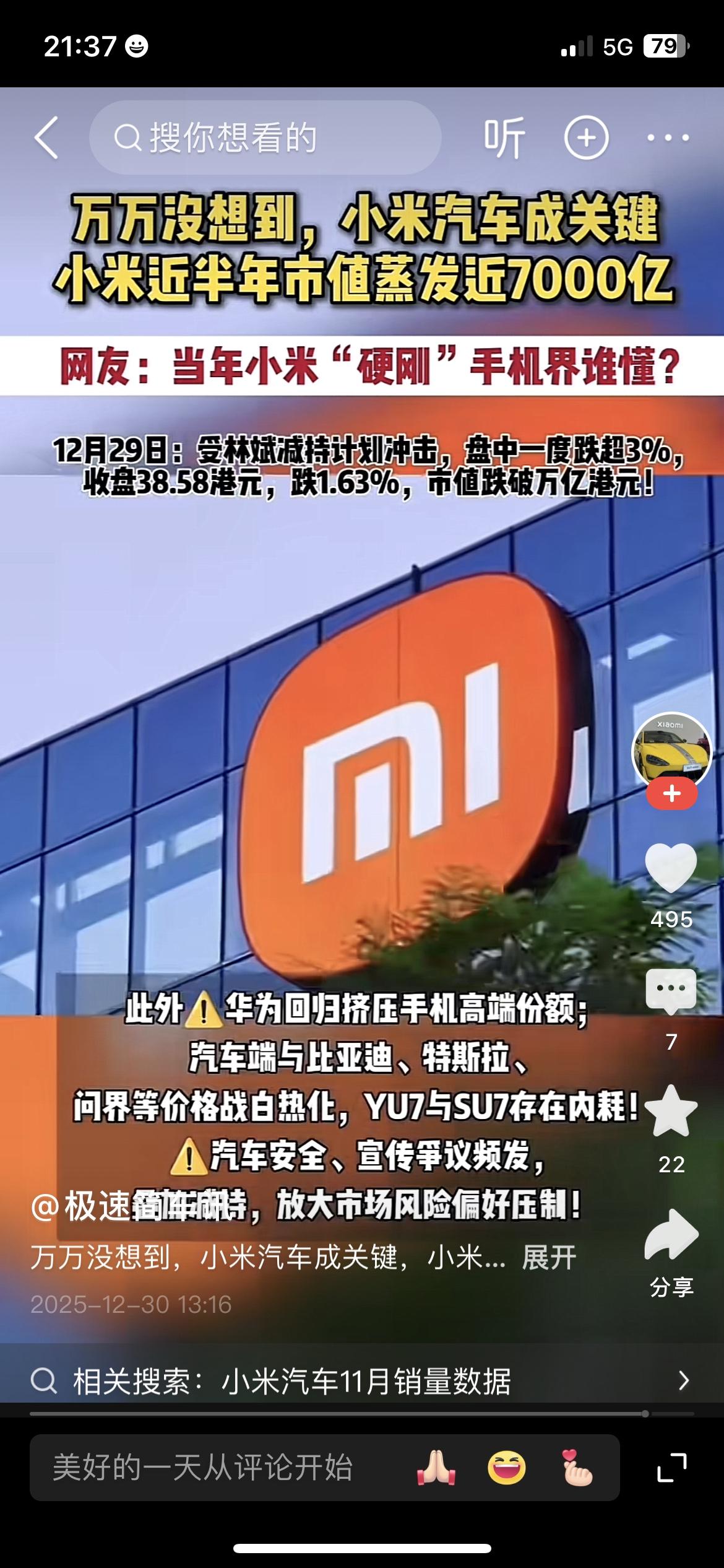小米市值突然蒸发,老米粉的我有点慌,这些信号要留意小米动态 昨天刷财经新闻,