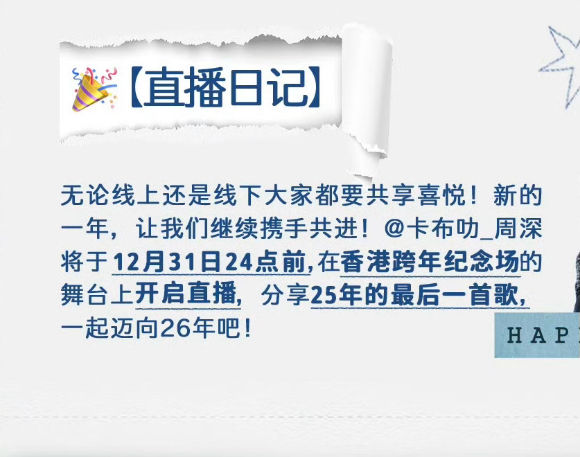 周深周深跨年直播 2025的最后一首歌,我们一起倒数吧,一起奔向美好的第二年❤️