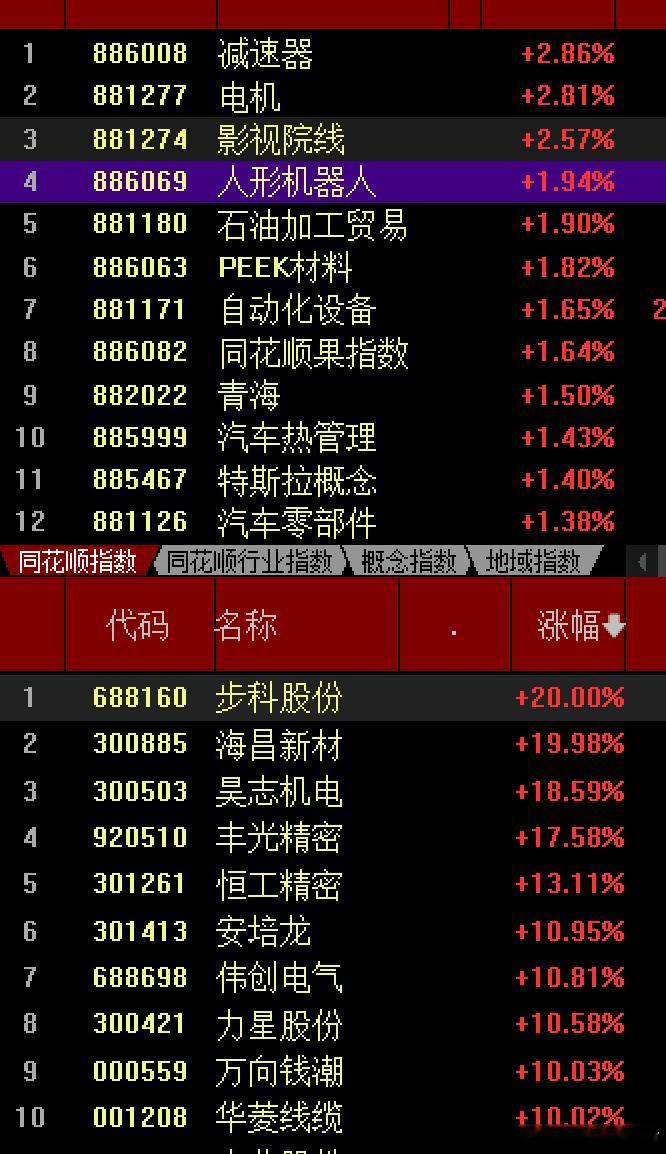 10连阳,大A罕见的,虽然今天是假阳线,那也是阳线呢知道大A短线会回踩震荡消化的,不过没想到直接大幅低开18个点的方式开盘,这也好,不然平开的话还需要下探回踩呢,这样低开一步到位,开盘就是当日最低点,说明就有资金借机抄底,承接拉起来,人形机器人数字货币等助攻大A最高到了3979点,但反弹压力3980-4000附近遇阻回落,3965点,一根假阳线,希望明天继续放量再收阳线,缩量就继续高位震荡,注意下方均线支撑明天是2025收官之战,平稳收官概率大,也不要想着站上4000点,这几天其实操作难度大的,能吧板块风口搭上就好的,就有肉吃,不然努力白费量能2.16万亿比昨天增加了点,希望后面能保持住2万亿以上的量就好但虽然指数10连阳,但整体情绪人气不咋样,操作难度大,热点轮动太快,红1800多家,绿3400多家,涨停66家,跌停19家,涨少跌多的局面对多头不利的,所以别管多少连阳,重点是板块方向的逻辑符合热点轮动的节奏今天的热点就是人形机器人,减速器,电机等产业链的回暖,和宇树科技,京东线下首家门店明天在北京开业,展示宇树的多款明星产品催化还有就是板块轮动也该到了,前面埋伏的几个股碰到风口上,$五洲新春 sh603667$ 实现了2连版,$昊志机电 sz300503$ 差点大长腿,$万向钱潮 sz000559$ $三花智控 sz002050$ ,华菱线缆浙江荣泰,斯菱智驱,长盈精密及模塑等超过20多家股涨幅逾9%,带动了人气情绪的挣钱效应peek材料,汽车零部件,热管理,新型工业化等产业链跟涨,步科2连版20cM大长腿的,方向对了就容易吃肉液冷,算力,消费电子概念,还有华为产业链休息了那么久,该来了,航天信息,科森伟创电气AI+应用端智能体,也是刺激,人工智能Ai大有可为今天商业航天有点冲高回落了,神剑连版后今天跌停,超捷,航天环宇,西侧,航天发展,天银机电等多股高位阴线有调整意图,拖垮情绪,第一梯队基本上差不多了就别上头了,调整下来到位后,政策催化还会有机会,但不是现在贵金属资源品种,白银有色等外围剧烈震荡,被干扰明显,小心点明天是2025年最后一交易日,市场抛压不会重,关键看板块轮动切换,机器人能否持续性,现在赚钱和指数关系不大,高位股小心点,低位没咋涨的主流等着就好