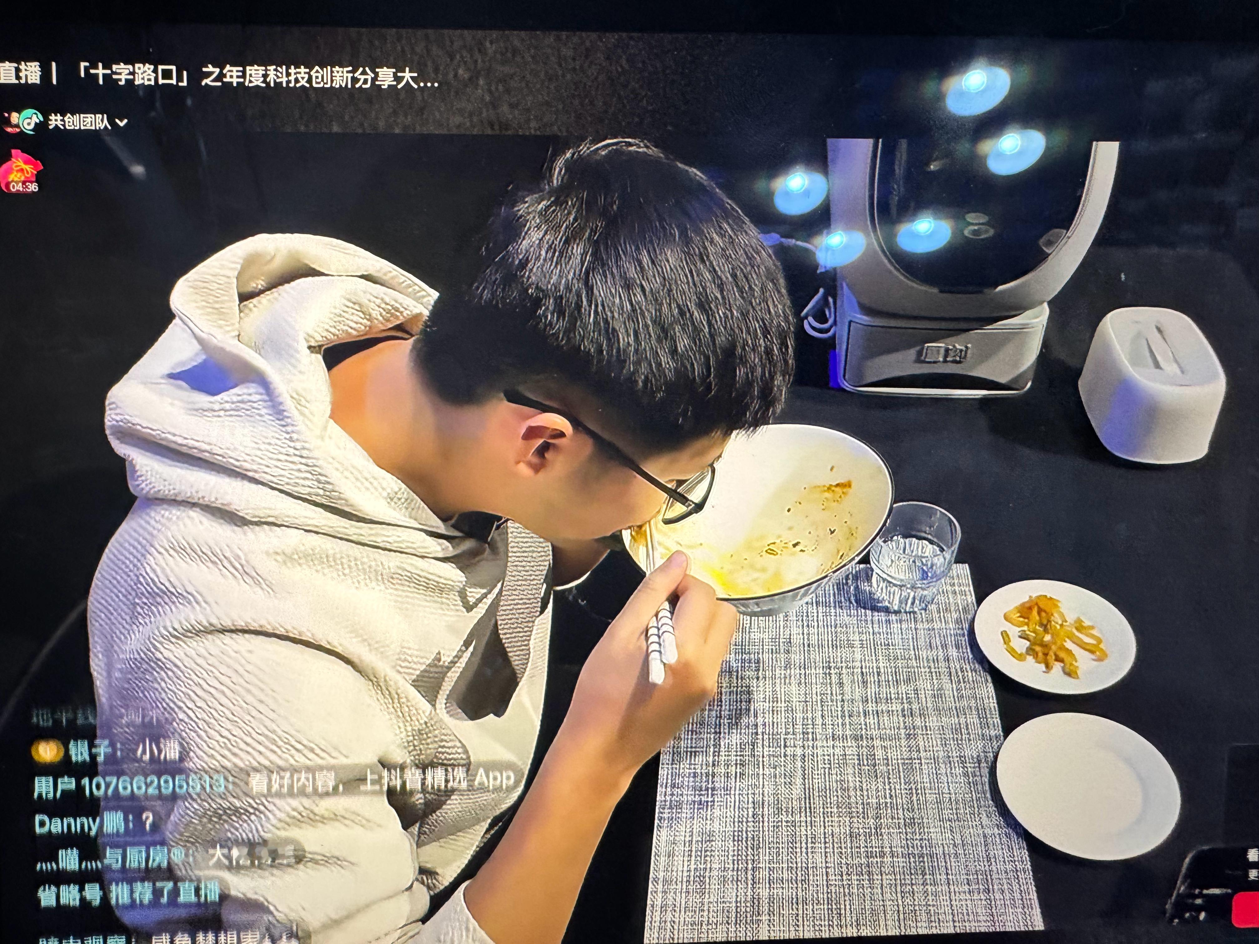 老罗真的能整活,Tim当“单身汉”是真的敬业,认真的吃认真的洗,毫无表情,纯粹的工具人Tim:你们忘记放粥了罗永浩科技春晚