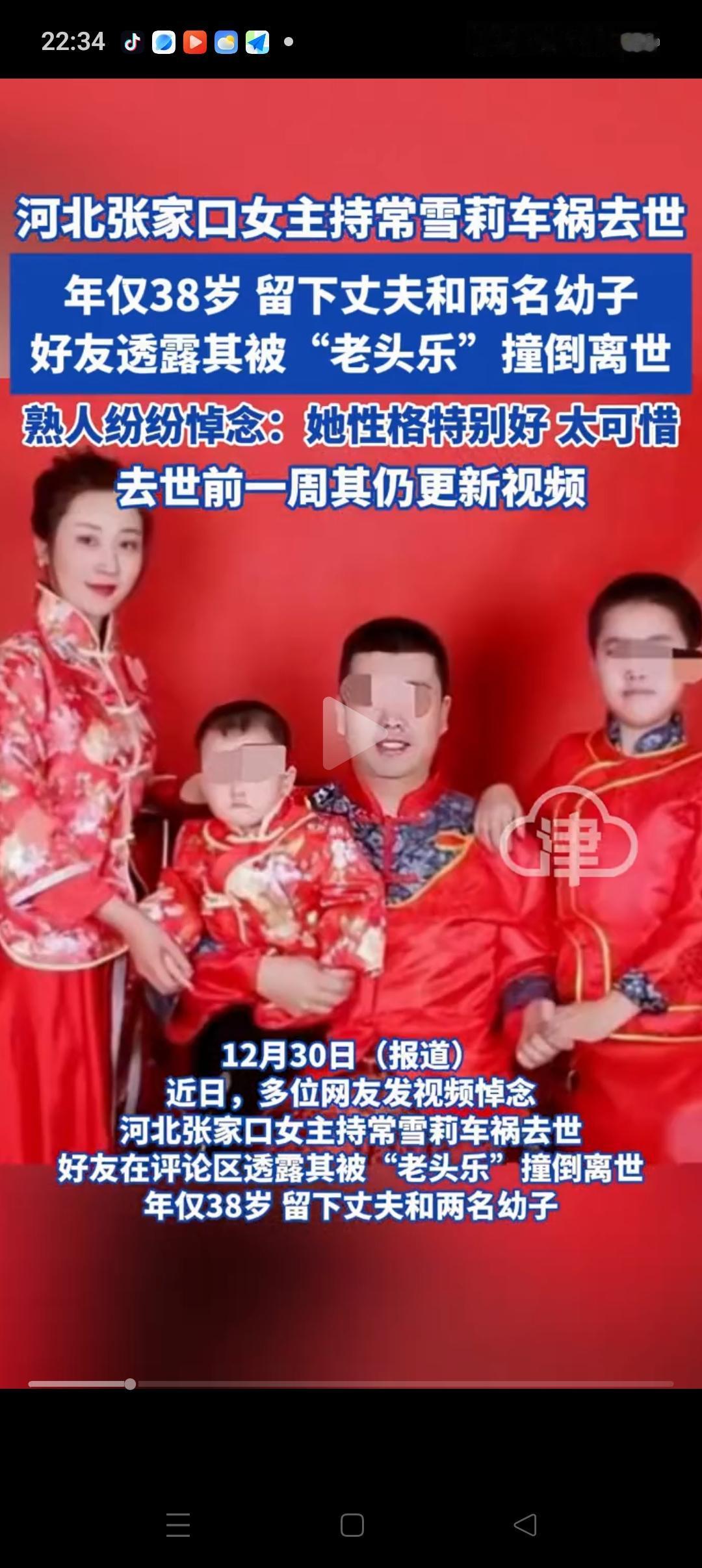 河北被老头乐撞倒离世的38岁女主持人真的很漂亮!她的性格真的非常好,也有一个温暖