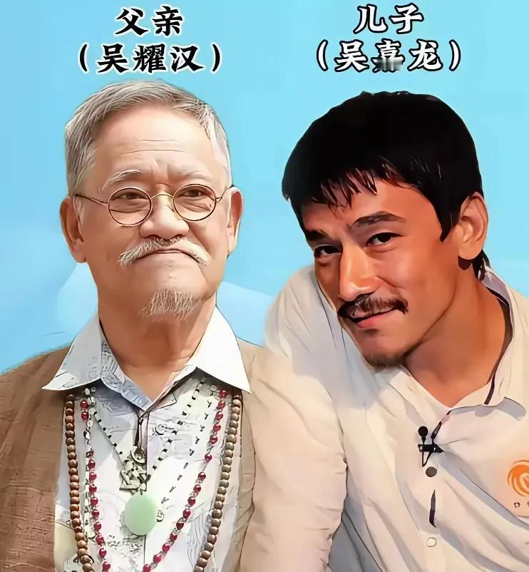 曾志伟父子俩——儿子不如爸 樊梅生父子俩——儿子不如爸 狄龙父子俩——儿子不如爸 向华强父子俩——儿子不如爸 钟镇涛父子俩——儿子不如爸 袁小田父子俩——儿子不如爸 徐锦江父子俩——儿子不如爸 吴耀汉父子俩——儿子不如爸 一提到吴耀汉,大家肯定都看过他演的港片,他可是港天黄金年代的金牌喜剧配角,虽然他演的都是一些配角,但是他演的配角一点都不输给主角,他的表演也深受观众们的喜爱,他的儿子也从事和他一样的行业,也演过不少配角,但是论名气还是不如爸爸,父子俩为人都非常的低调。