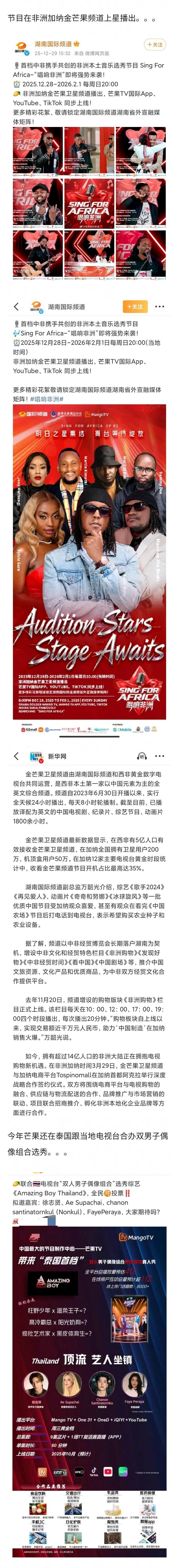 芒果台选秀之心不死。。非洲泰国选秀ing