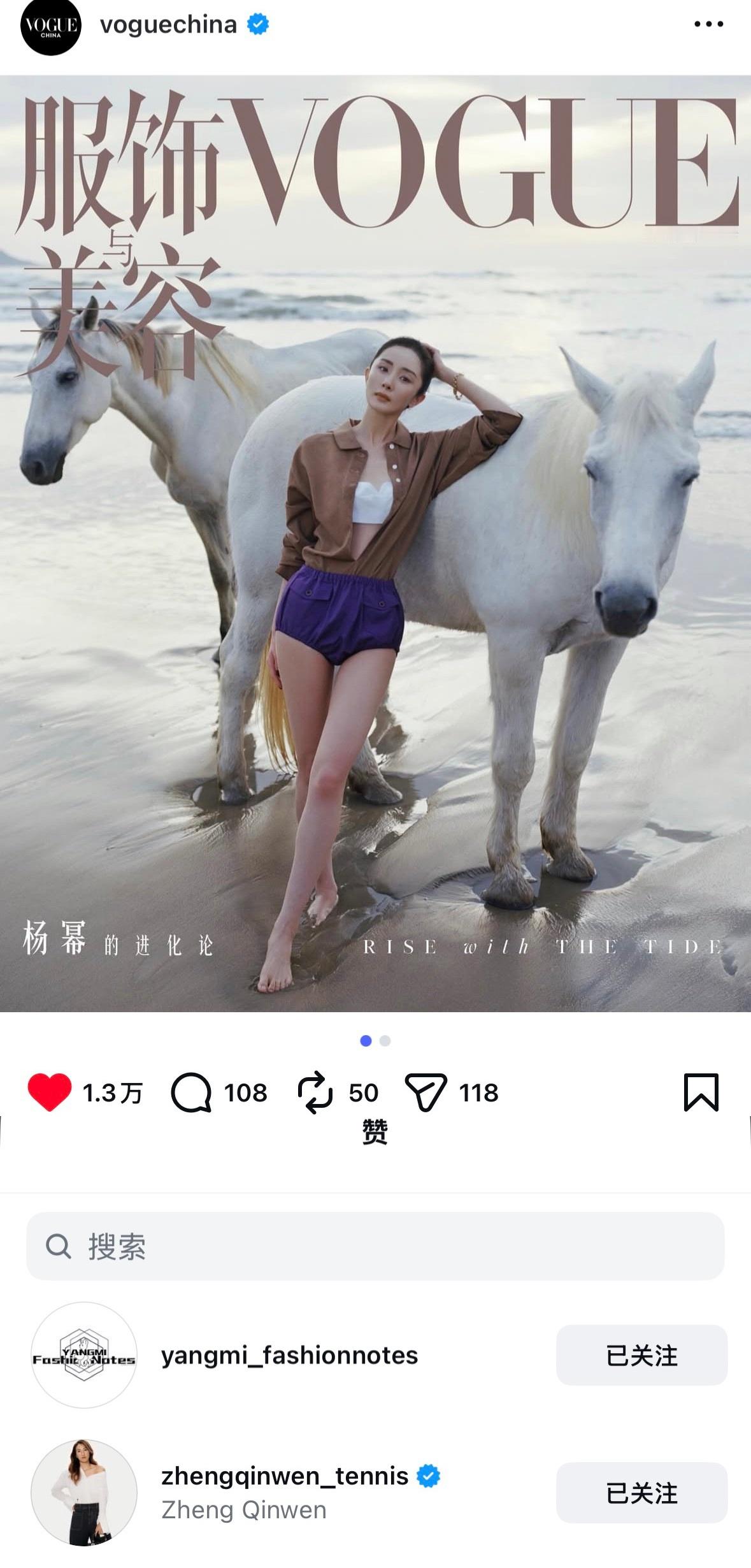 郑钦文ins点赞杨幂vogue开年刊!Queen和Queen之间的互相欣赏啊