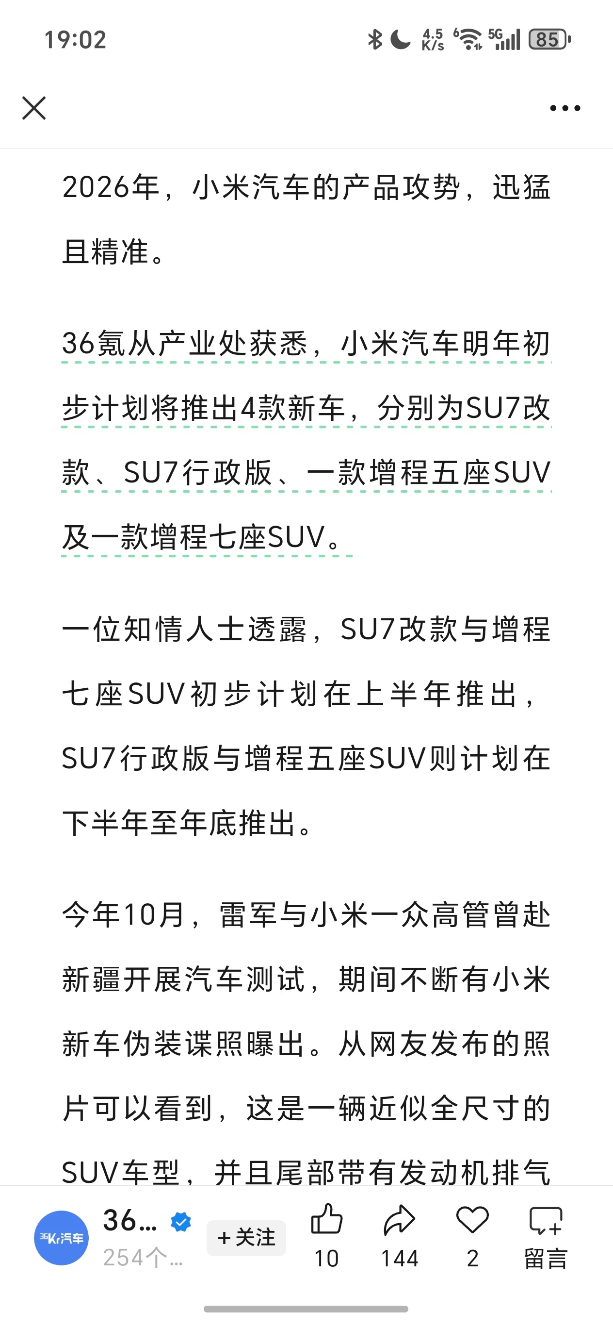 都怪36氪泄密小米4款新车这么来看,YU7GT会晚一些
