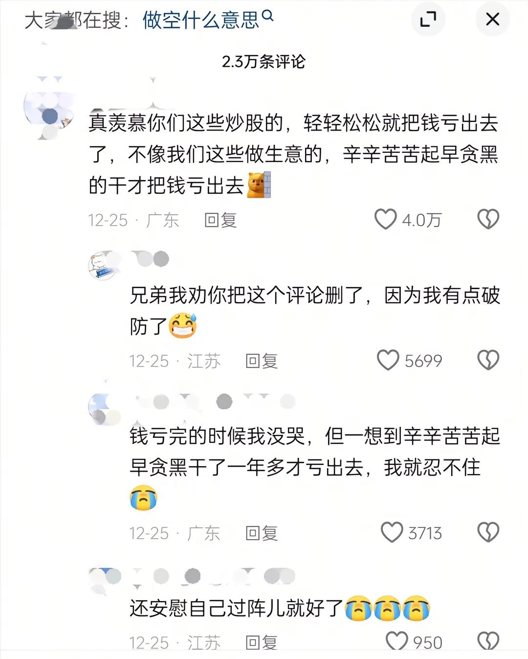 真羡慕你们这群炒股的,轻轻松松就把钱亏出去,不像我们这群做生意的,起早贪黑辛辛苦苦的才把钱亏出去。炒股感悟心得